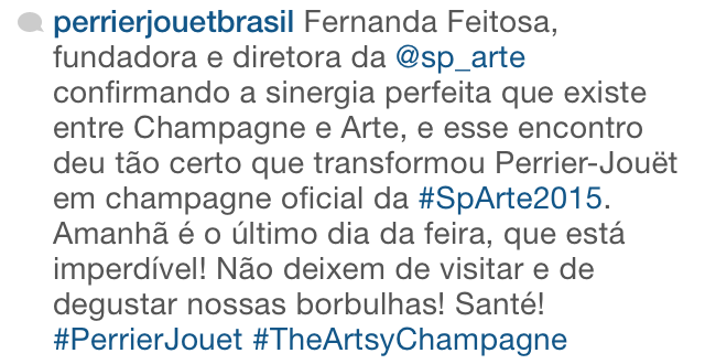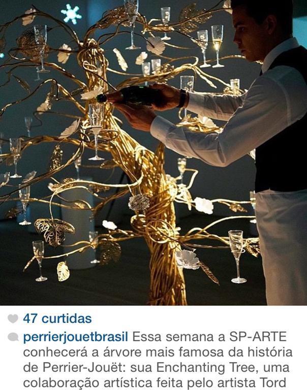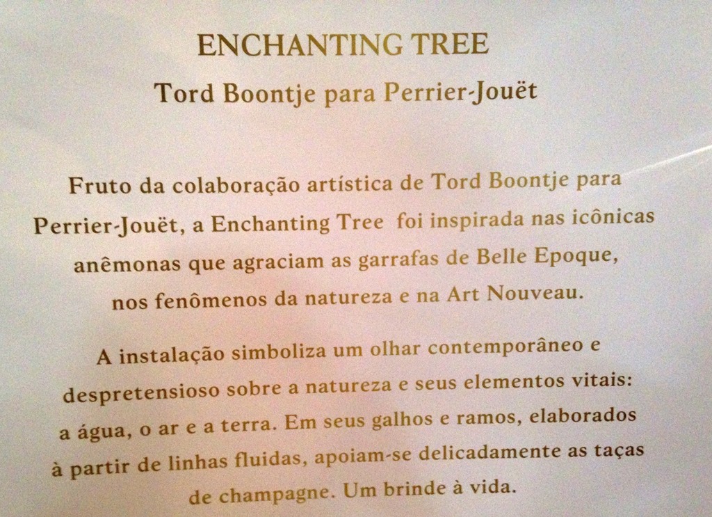 O coq inaugural da feira foi regado a champagne PERRIER JOUET, que levou inclusive sua árvore ícone para o lounge da Bienal.