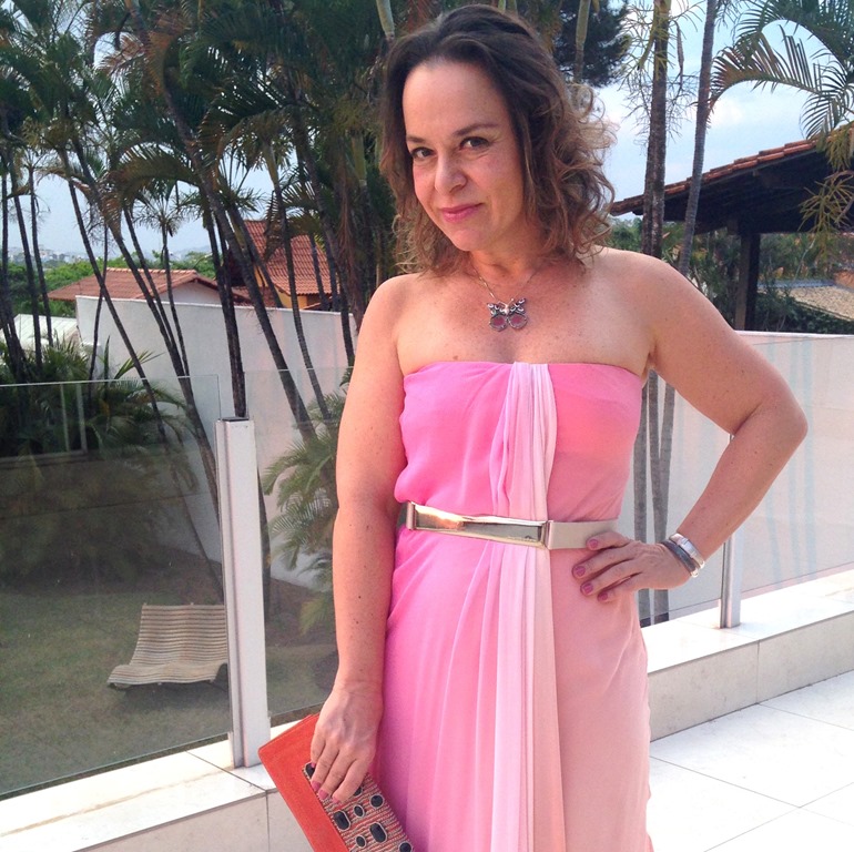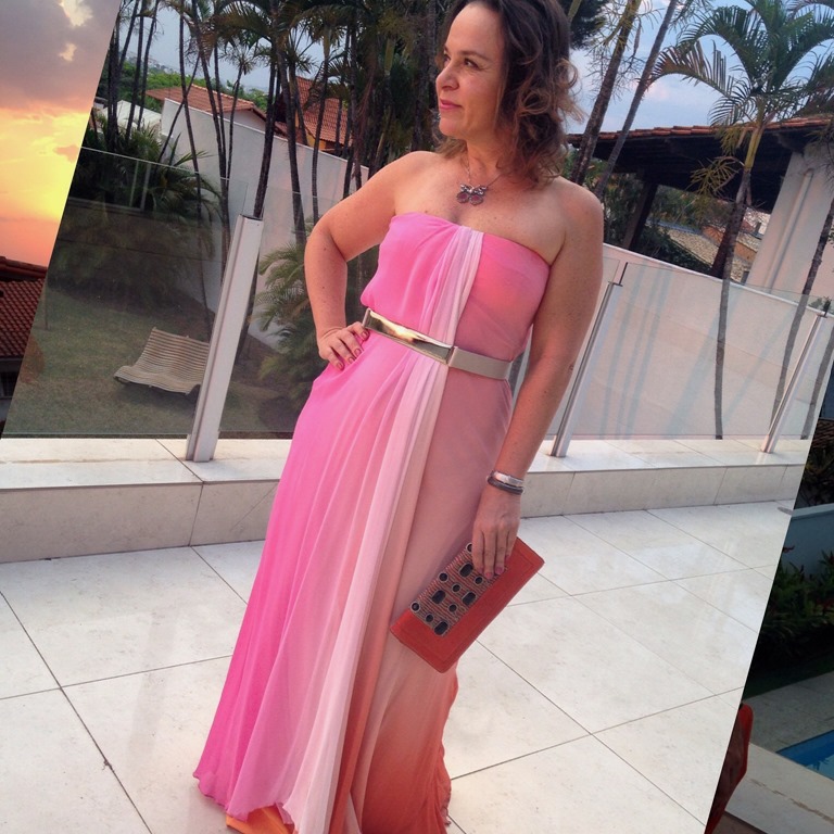 Amo minhas coisas todas e adoro usá-las em oportunidades diferentes e de maneiras inusitadas. Esse vestido comprei para a festa de 15 anos da minha 1a. filha Rafa há 5 anos atrás , pois a festa dela era exatamente nesses tons …