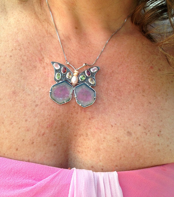 toque de primavera – colar butterfly ( em ouro branco, pedras e brilhantes negros )