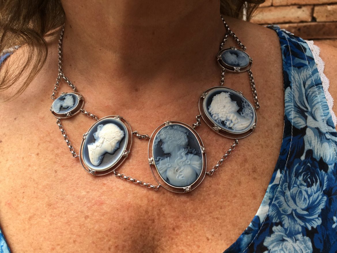 Eu mesma , analogamente, já montei peças com ossos de animais e penas de arara azul compradas em tribos na Bahia. Também já trabalhei com peças em madeira e também com conchas e pedras vulcânicas que catei pelo mundo afora. Antiguidades sempre foram minha paixão, já montei camafeus comprados em antiquários aqui e fora.