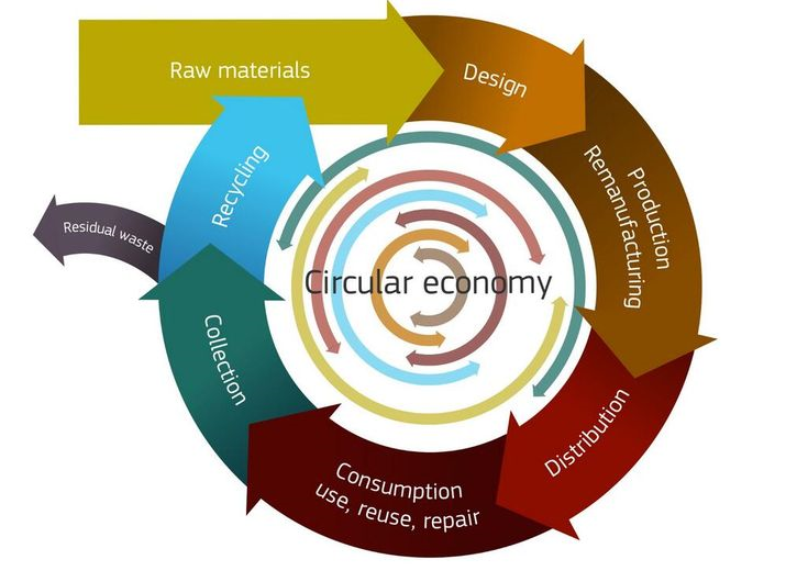 Substituindo o conceito de fim-de-vida da economia linear, por novos fluxos circulares de reutilização, restauração e renovação, num processo integrado, a economia circular é vista como um elemento chave para promover a dissociação entre o crescimento económico e o aumento no consumo de recursos, relação até aqui vista como inexorável.