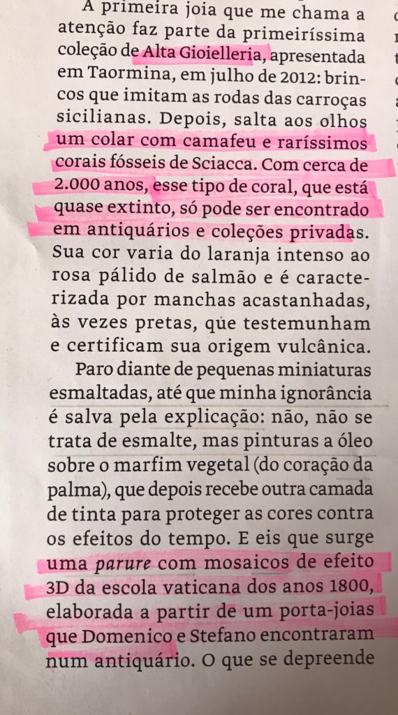 A VOGUE BRASIL abril/2019 trouxe essa matéria incrível sobre a alta joalheria da DOLCE GABBANA mostrando que eles partem sempre de peças de antiquário, exatamente dentro desse mesmo conceito. Com isso, eles produzem peças únicas e exclusivas, carregadas de valor histórico, joias para quem já tem muitas.