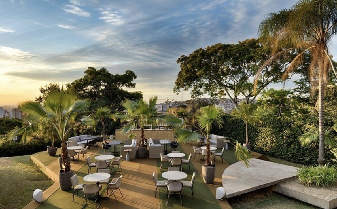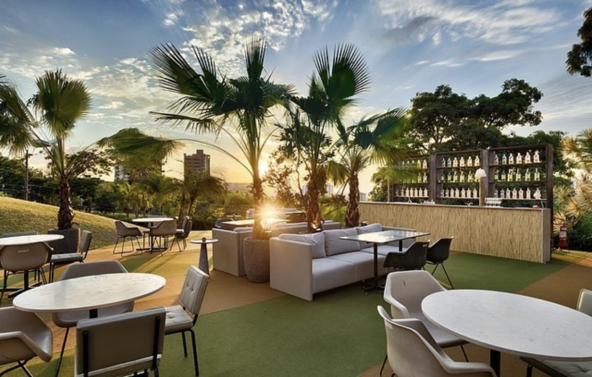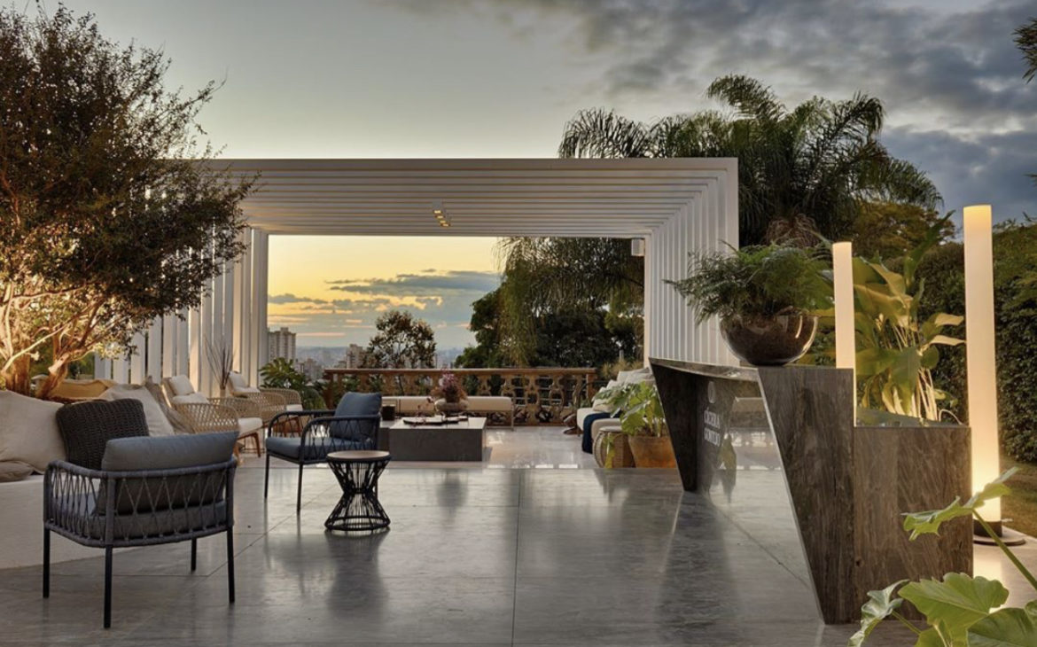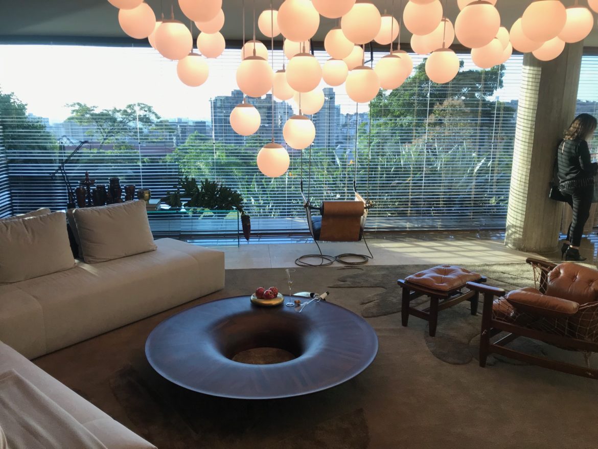 O bate-papo aconteceu nesse ambiente de Juliana Vasconcellos que foi tomando as cores do por-do-sol.