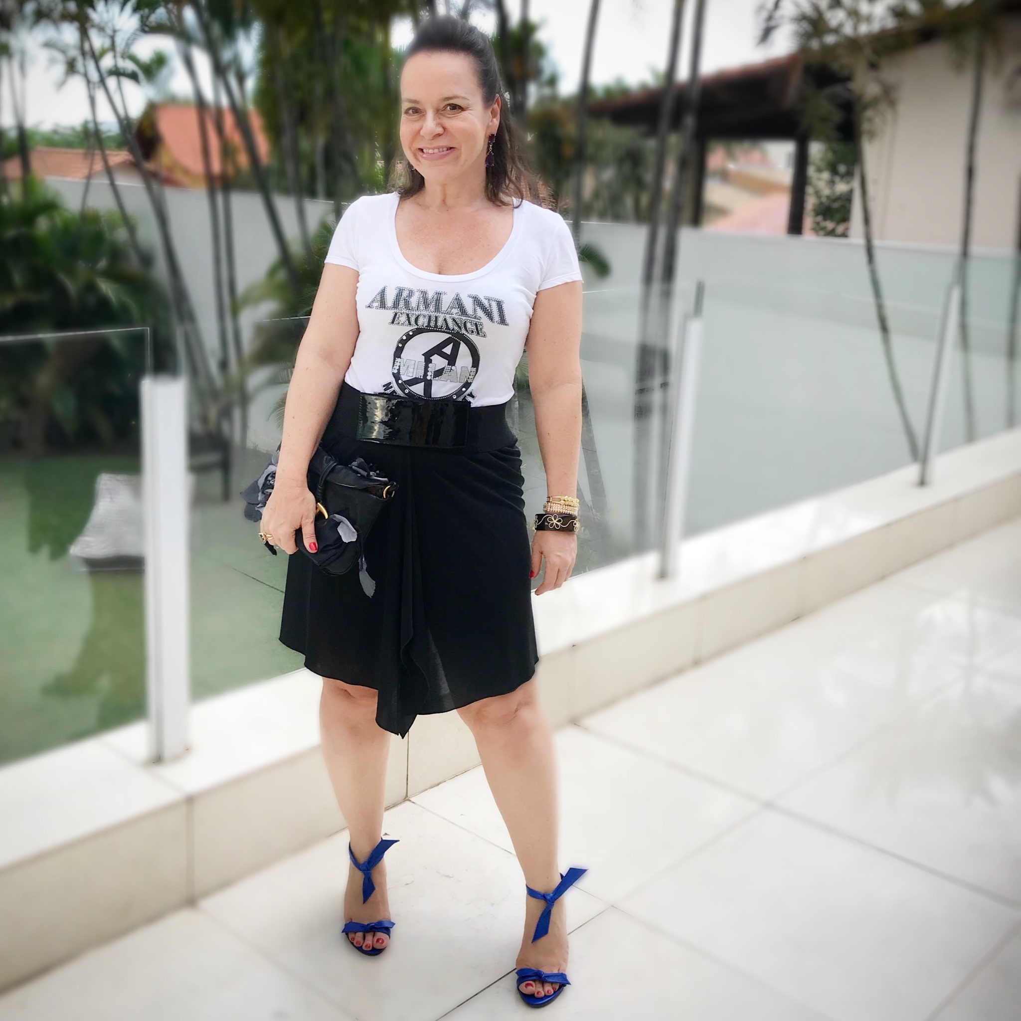 Nesse último encontro de mulheres que mostrei AQUI , Flávia ( a 2a. da esquerda ) e Nicole ( na frente no meio ) estavam exatamente assim. Uma t-shirt com uma saia linda e a cara de “mulherzinha” que esse look pede. Lindas!