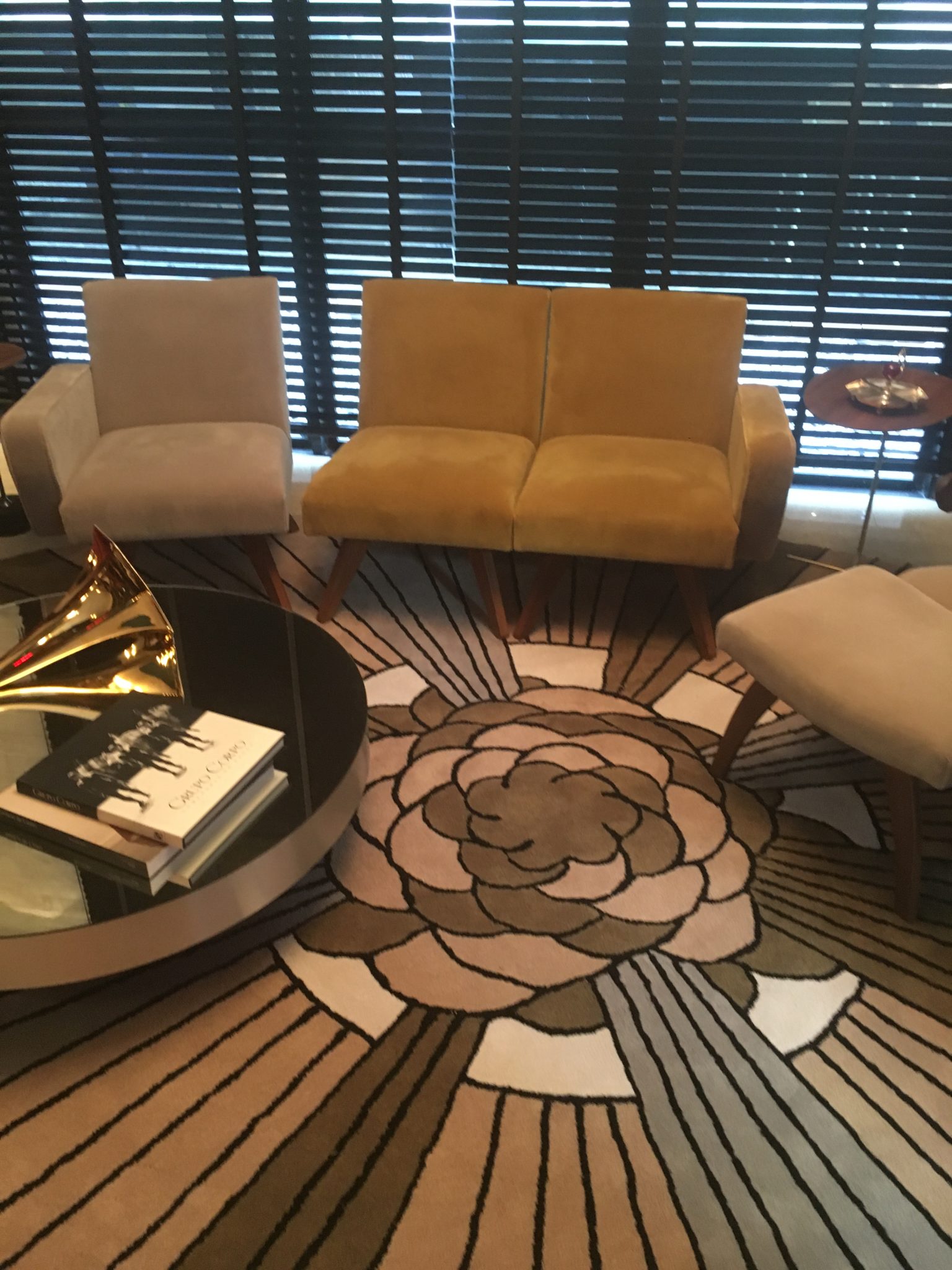 O desenho do tapete foi inspirado no lustre do teatro de Paris.