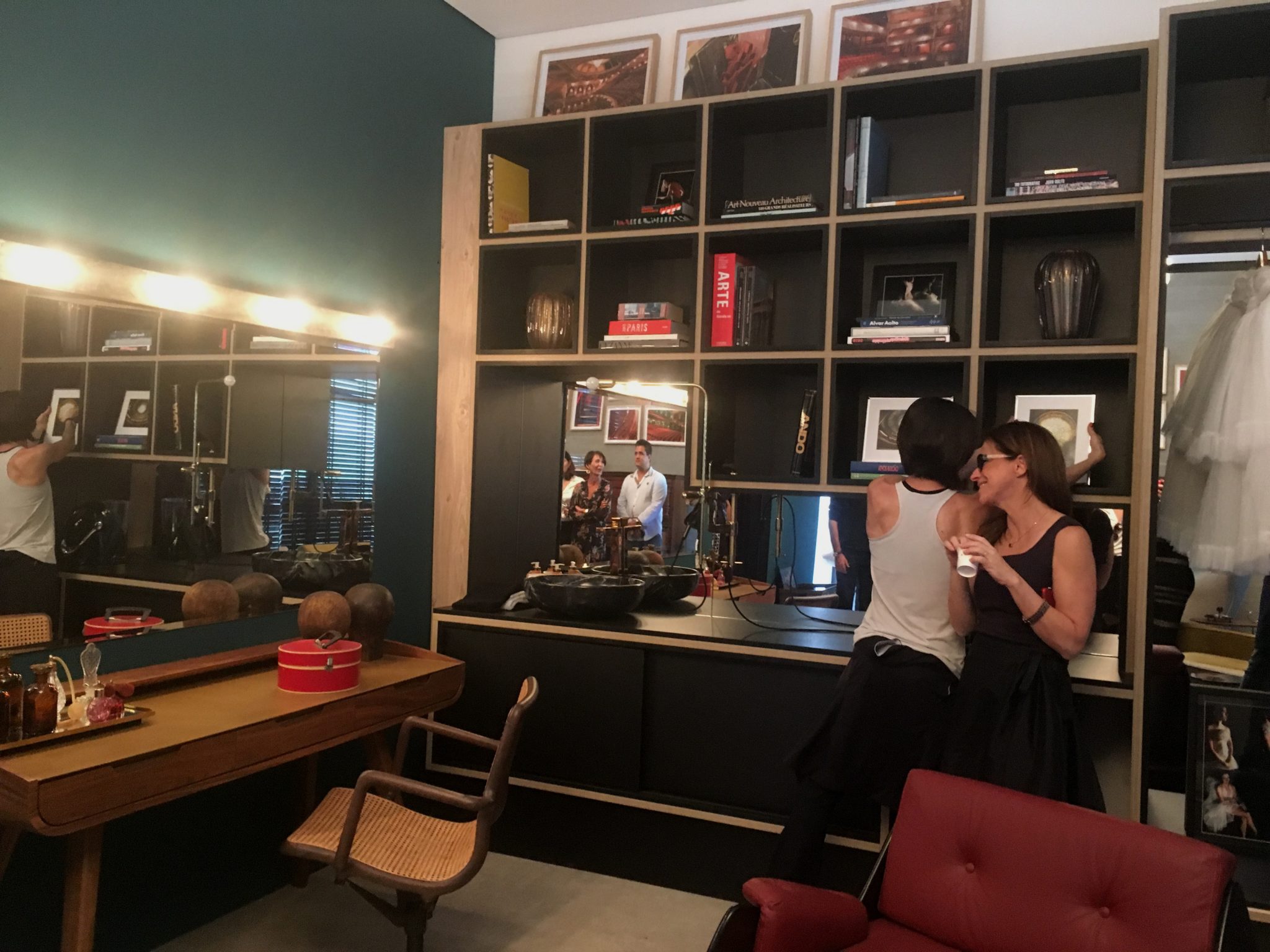 Foi muita emoção vê-los pessoalmente explicando como o camarim ( um dos ambientes da mostra, logo atrás do teatro ) foi idealizado. Como sou ex-bailarina , essas coisas pegam direto na veia …