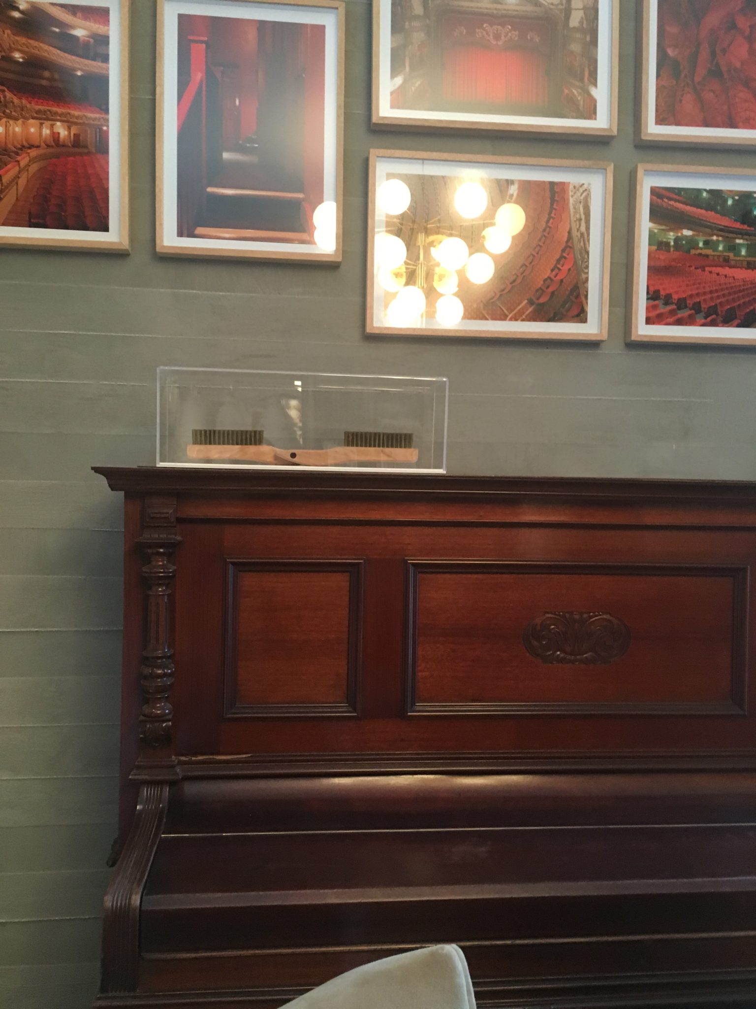 O camarim foi todo inspirado no Teatro Champs Elysèe , que é onde eles mais frequentemente se apresentam em Paris. O figurino exposto é original dessa última turnê LECUONA, que está em cartaz em 2016.