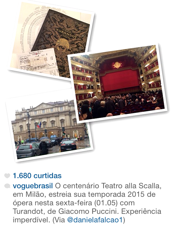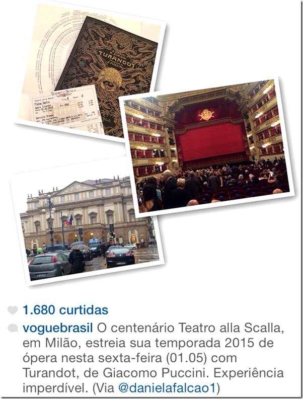 Pois é, eu não poderia ter dado mais sorte em estar em Milão na época de abertura de temporada de ópera no SCALLA. Acho que tem que ir! Embora Turandot não seja minha favorita, acho o programa imperdível. Look “ old-fashioned “ para esse programa ! ![]()