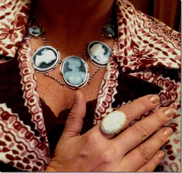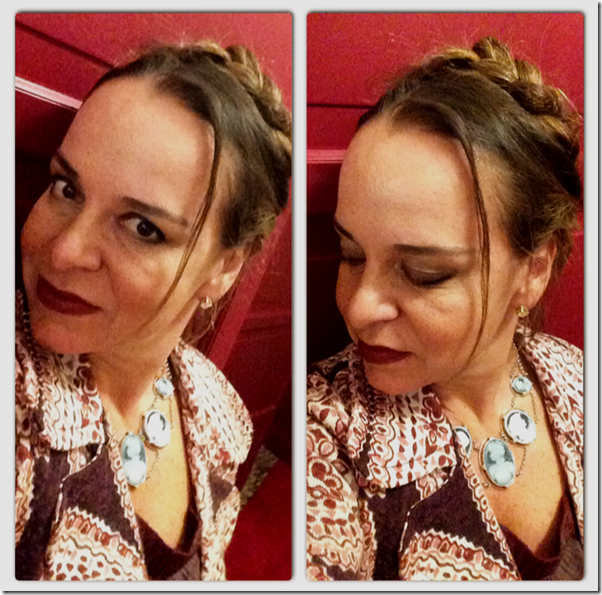 … saiu para a noite em Milão com o casaco vintage da viagem toda + camafeus + super anel de brilhantes e um coque de trança ( que adoro! e dei conta de fazer …
