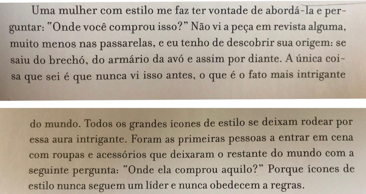 Eu adoro tratar desse assunto e dividir trechos desse livro com vocês. Aliás, ele trata exatamente sobre a diferença entre ter estilo ou andar na moda.