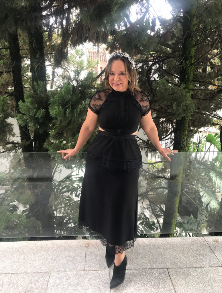 Fiz a make com olho borradinho e um cabelo desconstruído. Além disso, usei um look preto, que embora fosse um lindo vestido de renda SELF PORTRAIT PARA MARES , ao ser usado com ankle boots, mudou de figura.
