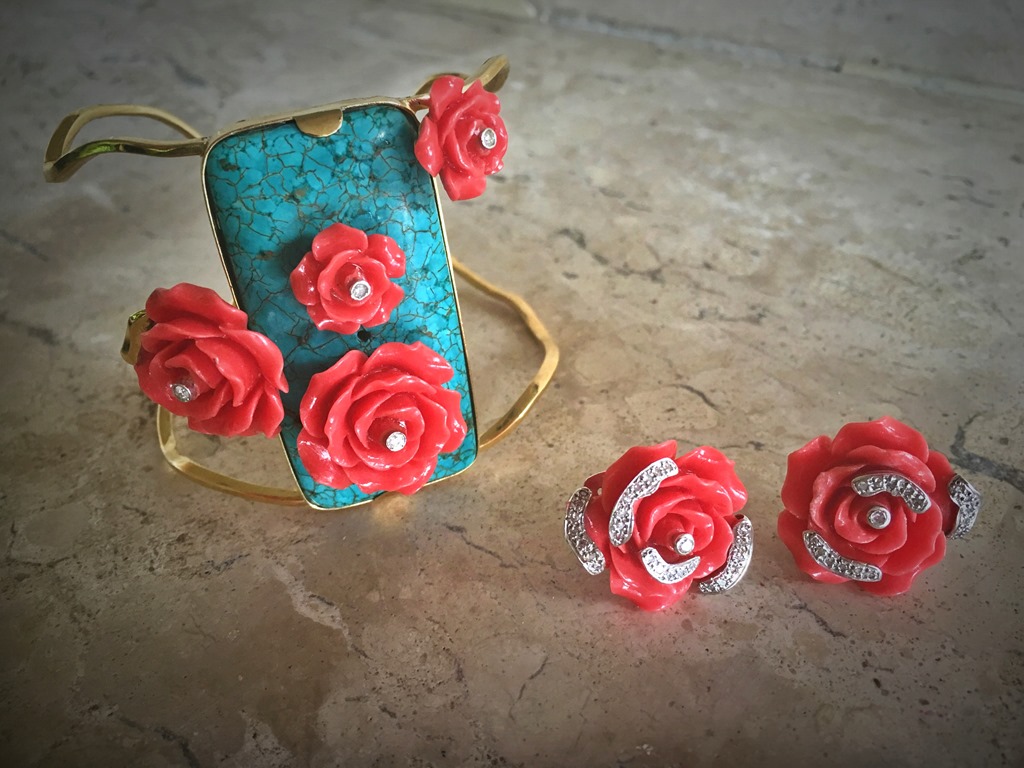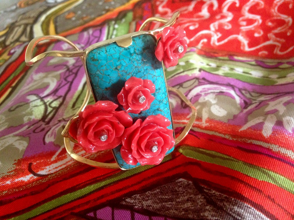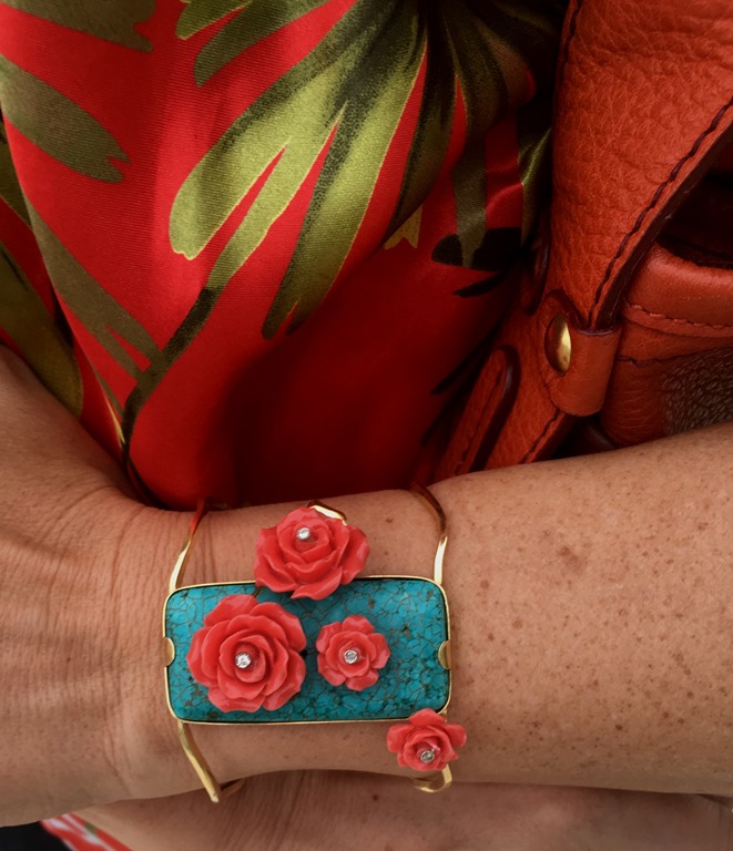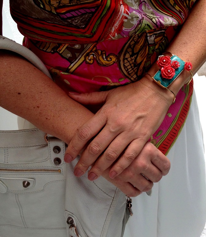 bracelete e brinco de flores JÓIAS PD nas cores do lenço