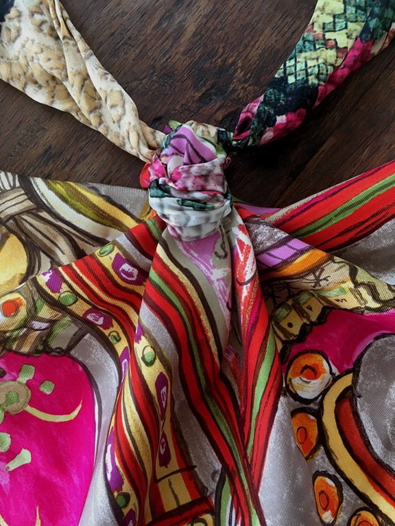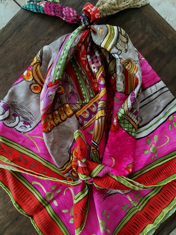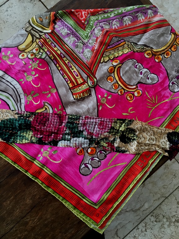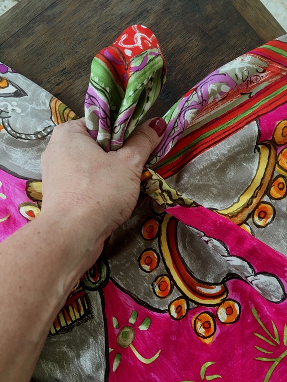 1) Divida o lenço ao meio e proovidencie uma faixa ( lenço HERMÈS – faixa SCARF ME )