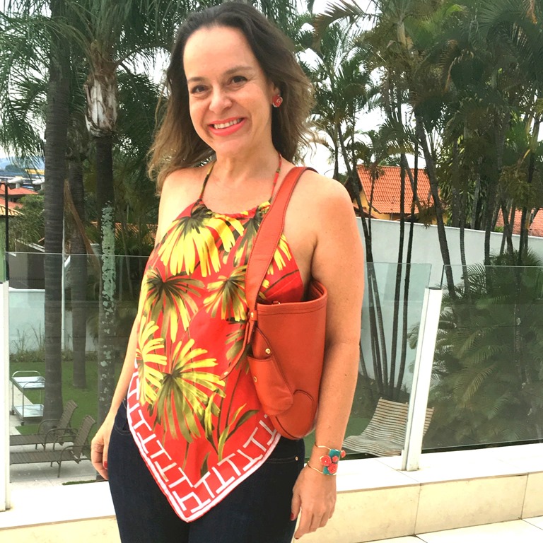 Alguns tops de lenço já vem prontos, ou você pode mandar fazer. Já têm uma cordinha em cima e outra na cintura para amarrar. Como esse abaixo: