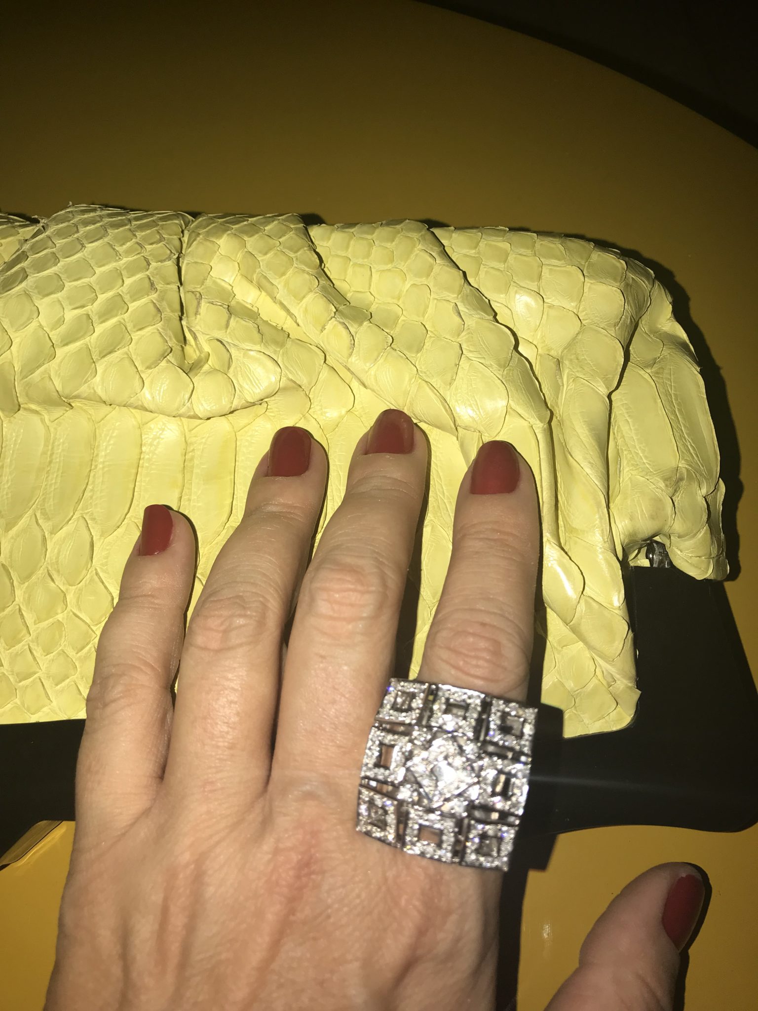 Exatamente por isso, optei por joias sem cor – ouro branco e brilhantes – neutralizando a produção, mas com brilho e glamour!