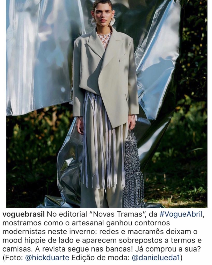 No mês de abril, a VOGUE BRASIL já tinha feito uma matéria linda, mostrando que as tramas na moda estão onipresentes, conforme você vê abaixo.
