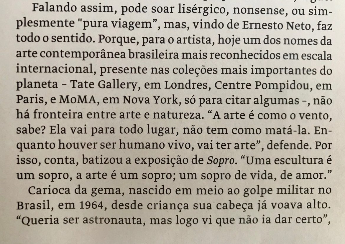 A revista MARIE CLAIRE de junho/19 trouxe uma matéria sobre ERNESTO NETO , assim como sua maravilhosa exposição SOPRO na Pinacoteca de SP.