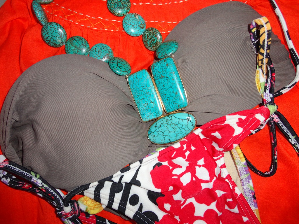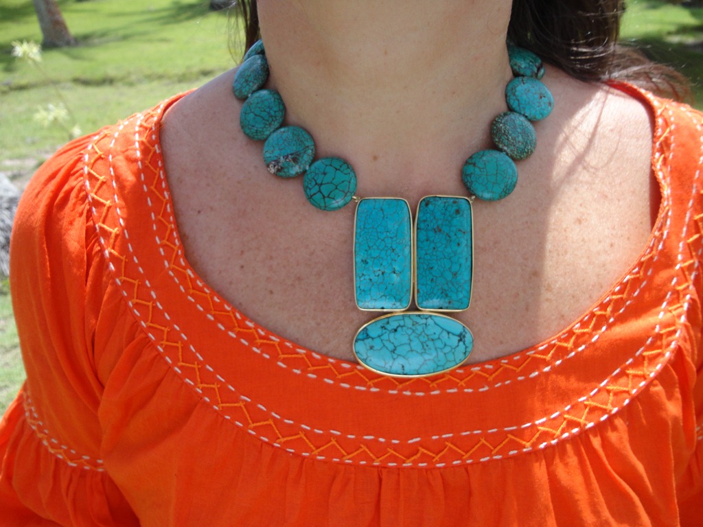 - MAXI COLAR TURQUESA: O maxi colar faz o papel do acessório eleito para dar uma incrementada no look de praia e turquesa é a cara do verão!(bem…eu levo “otras cositas mas”…rsrrs…. outras jóias e misturo com “bagulhinhos locais” que têm a cara étnica/rústica do lugar…) e turquesa é a cara do verão!”