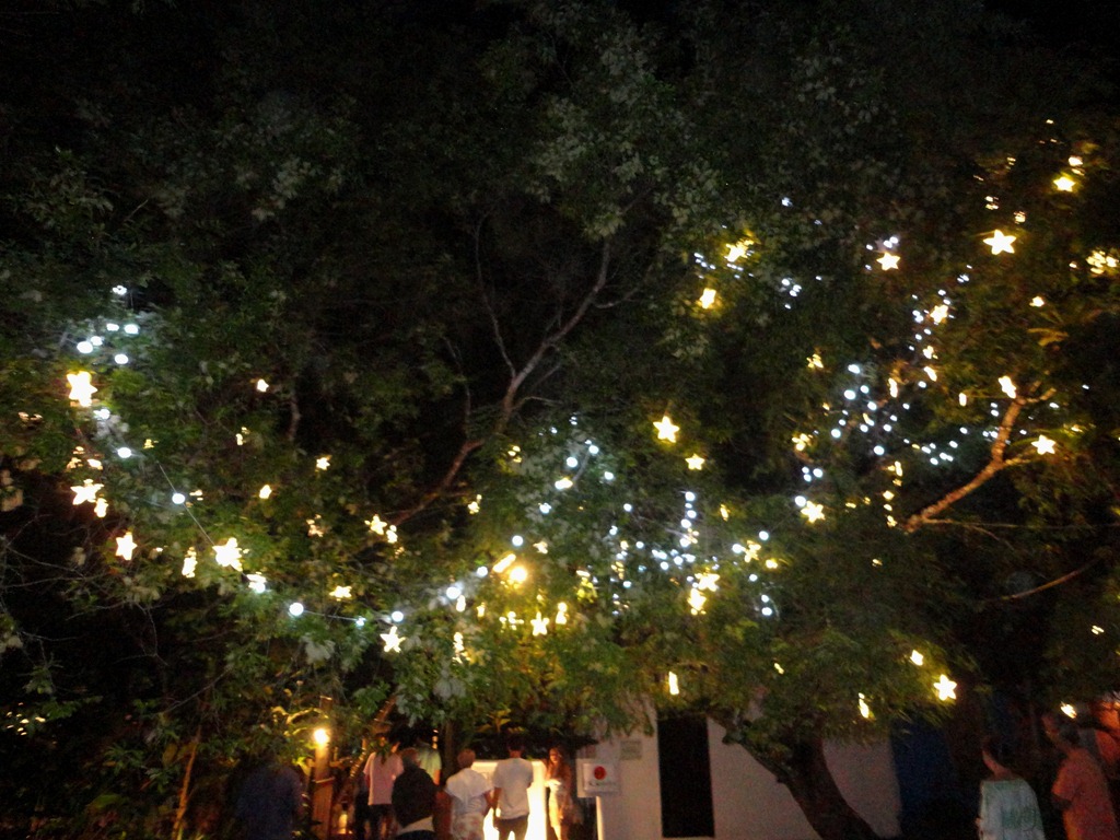 As noites em Trancoso são no Quadrado- vários restaurantes deliciosos e lojinhas lado a lado.Como as ruas são de terra , rasteirinha no pé é condição. As mesas são debaixo das árvores e cada restaurante tem sua especialidade.