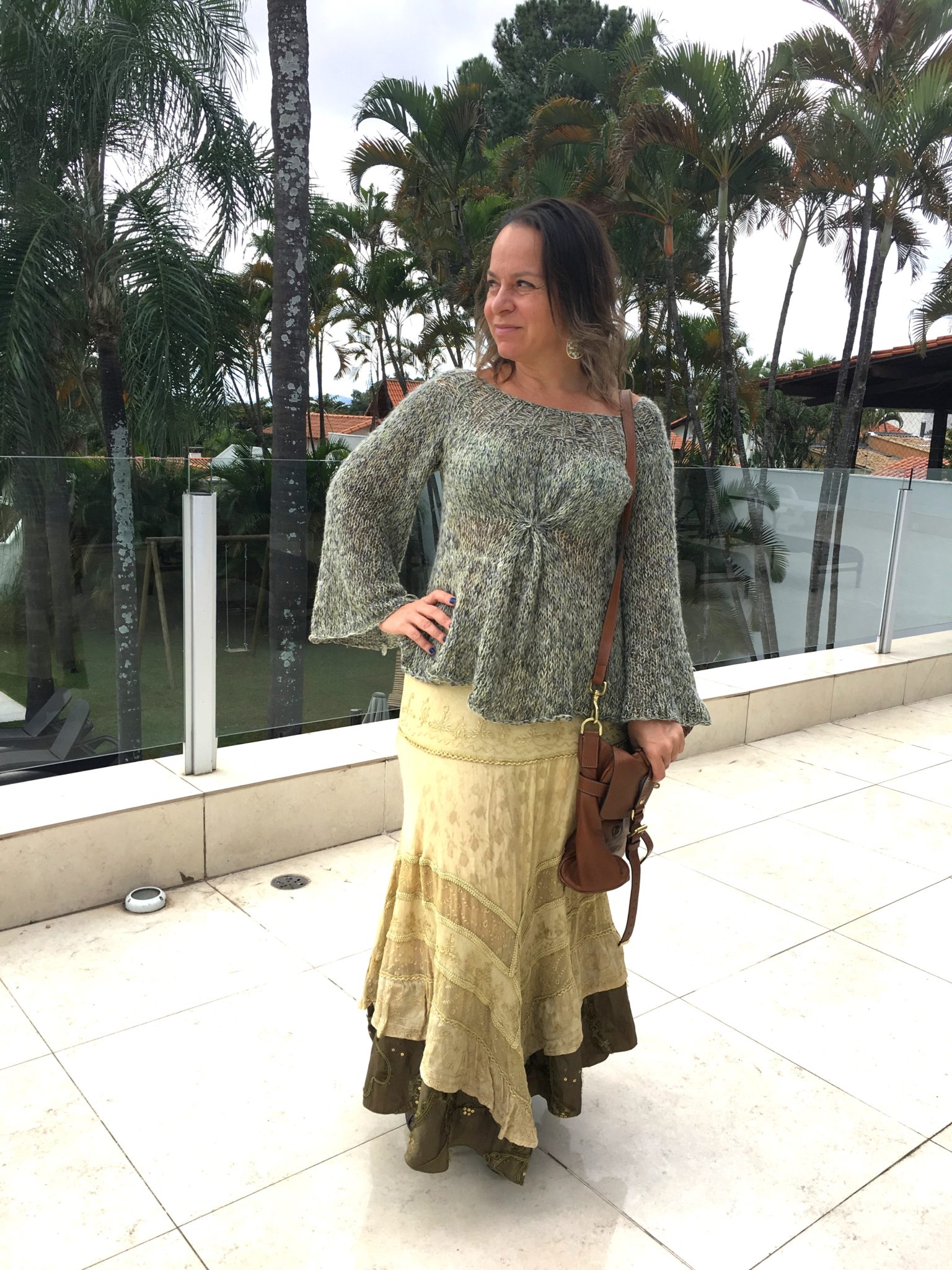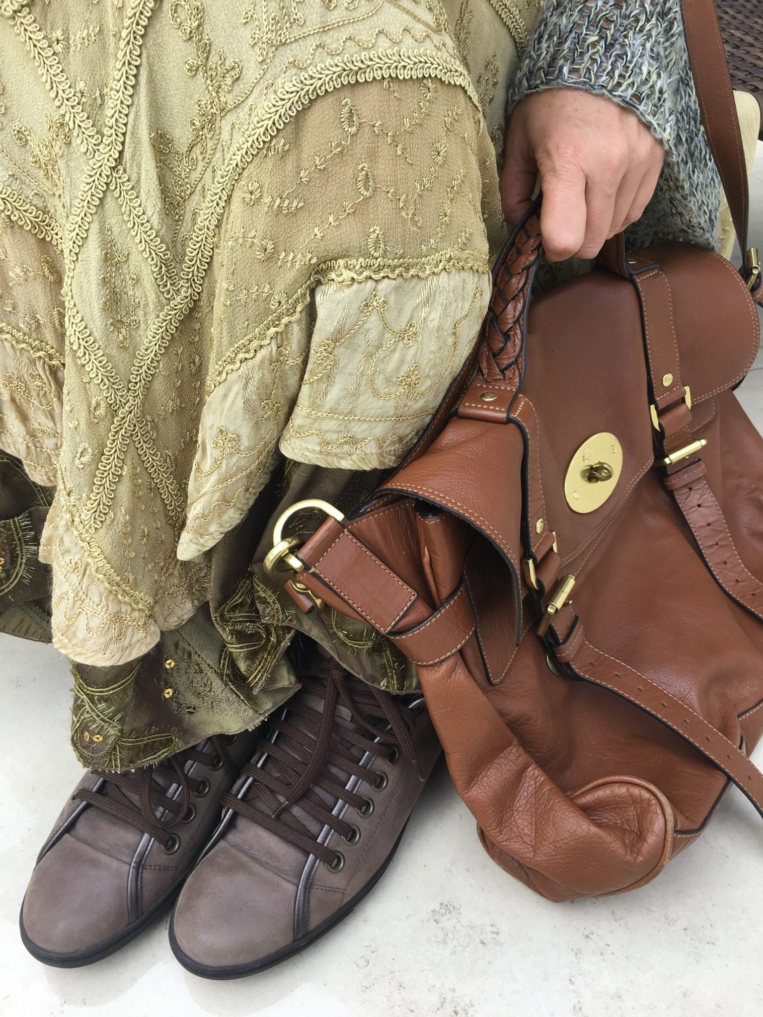Look para aula de culinária na AGNES, programa delicioso que acontece uma vez por mês. Como dura de 14:30 às 18hs e a gente fica um tempo grande em pé circulando em volta do fogão, eu prezo conforto e vou sempre de sapato baixo. A saia indiana e o tricô molengo delicado receberam complementos mais pesados: uma botinha LOUIS VUITTON e a bag caramelo MULBERRY.