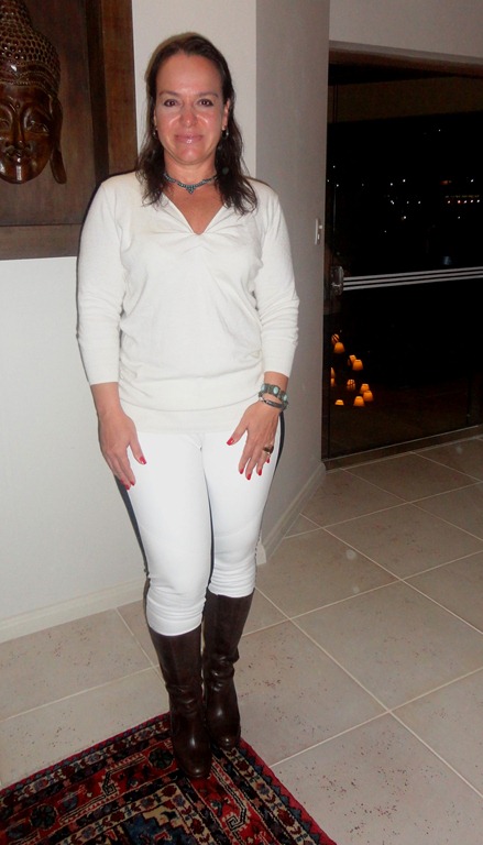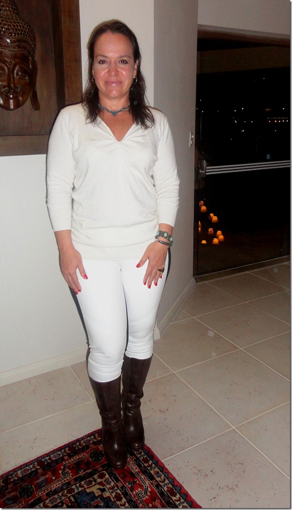 E eu achei super bonita a combinação descolada de tricô + bota + jóias statement