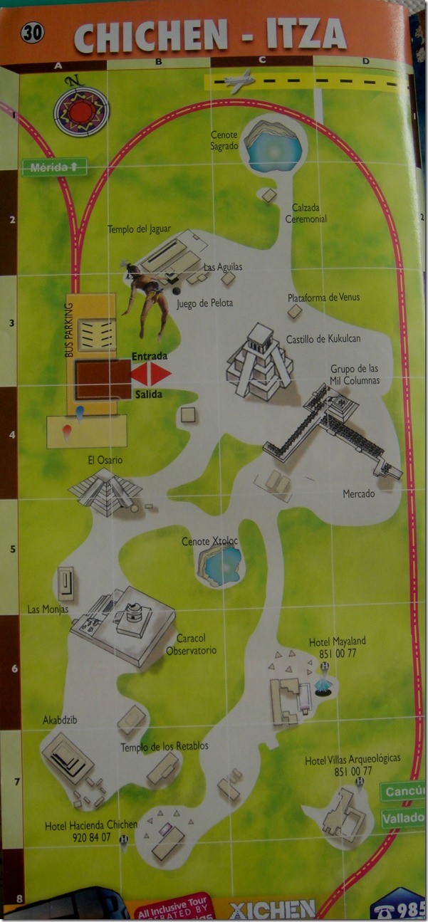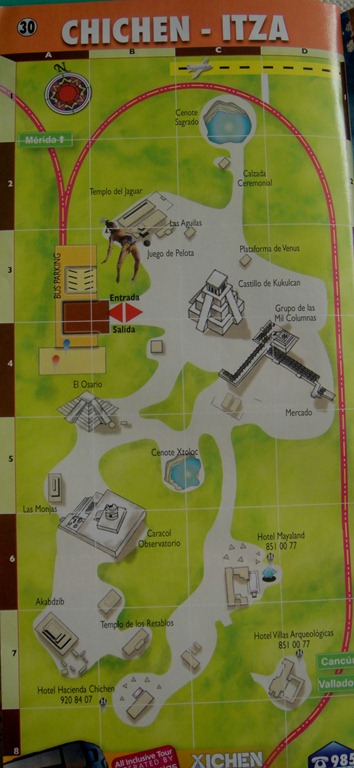 Quem estiver em Yucatán e dispuser de tempo , deve passar um dia em Chichen Itzá (duas horas e meia de ônibus), o maior sítio arqueológico maia com pirâmides de pedra cinza sob uma planície gramada, uma das Sete Maravilhas do Mundo. É cansativp subir as intermináveis escadas , mas a paisagem de lá de cima é deslumbrante. Pode parecer óbvio num roteiro solar como este, mas é fundamental levar boné e garrafinhas de água a tiracolo: o sol de verão é escaldante ao meio-dia. Dessa vez pulei, pois já havia ido com marido há 18 anos atrás, portanto, minha gana de conhecer estava “ sob controle “. E também não posso “ fritar “ a paciência das filhas, que têm 14 e 17 anos, e querem um pouco de dolce far niente, praia, shopping … afinal, estão de férias ! E o calor inviabiliza …