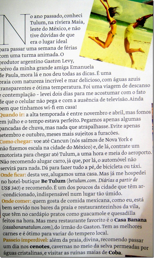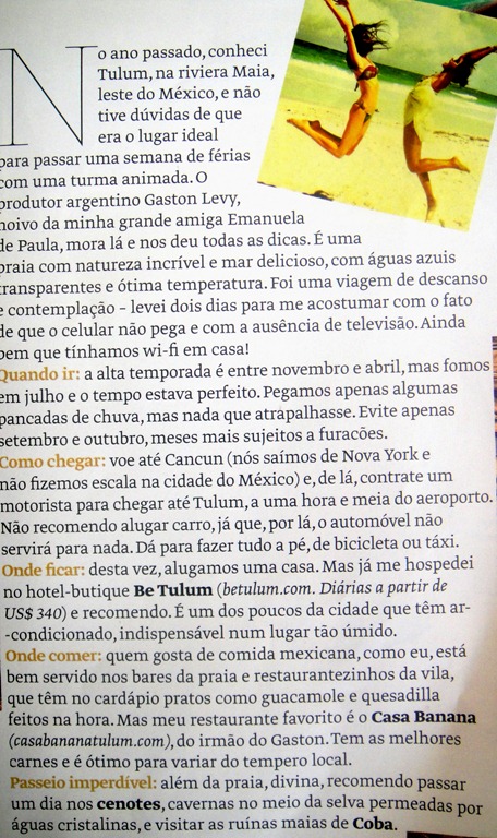 Mas apesar da sua proximidade com a famosa Cancun e com a festeira Playa del Carmen, Tulum não é para o mesmo público. A top Carol Trentini esteve por lá e escreveu para maravilhas para a revista VOGUE BRASIL.