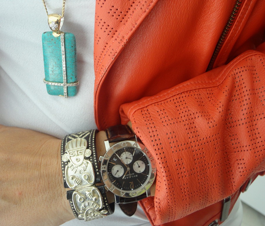 O programa ? Happy hour no LA PALMA , do Ivo Faria – por isso, menos jóias, menos tudo – e uma pitada étnico/ folk com a pulseira em palha e prata da Colombia .
