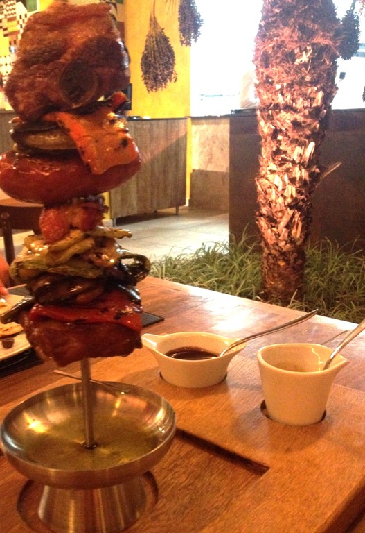 Olha isso, gente ! Espeto de costelinha e vegetais , aos 2 molhos ! Delicia !