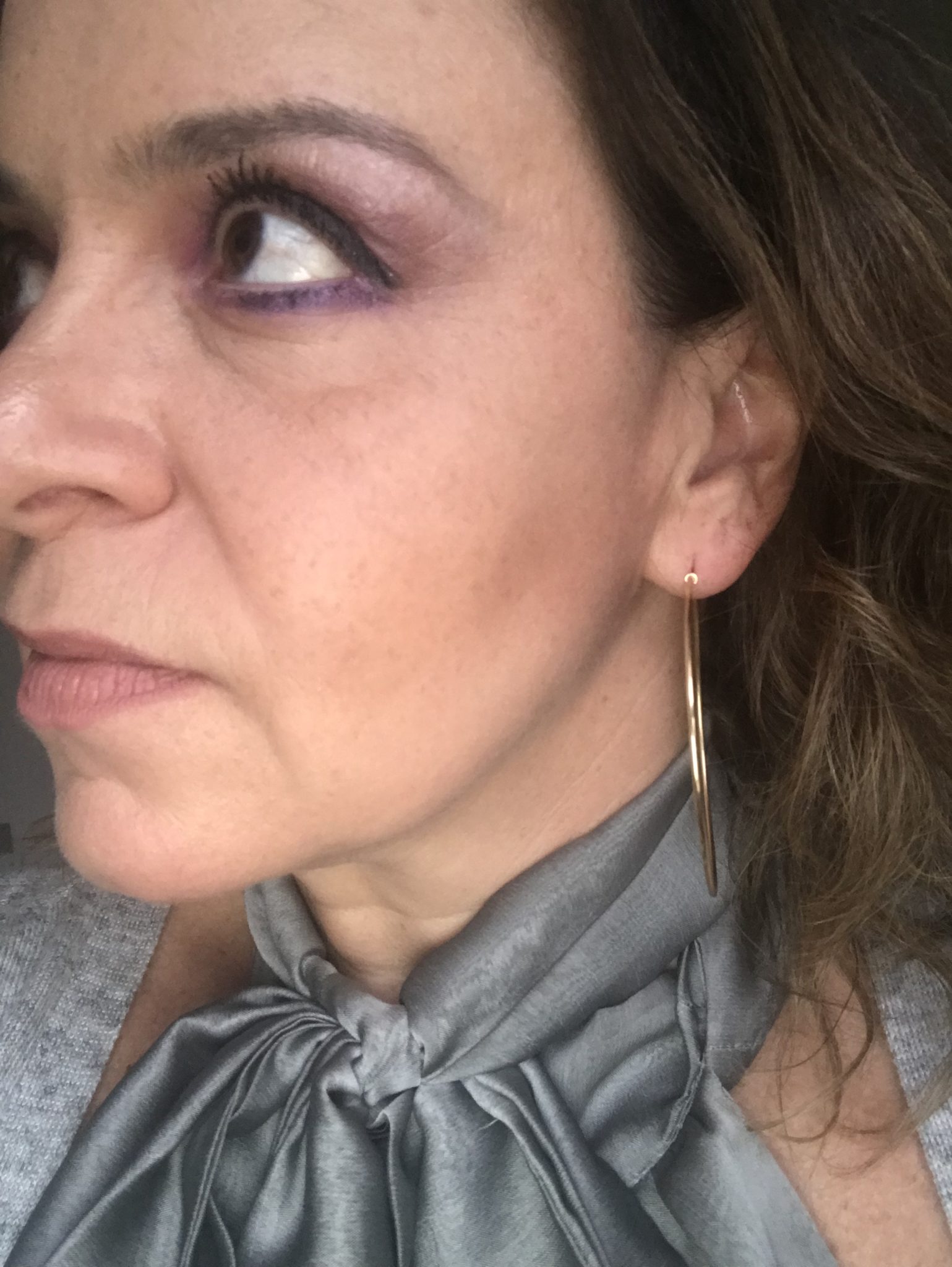 Escolhi uma joia simples – apenas uma argola fina e limpa em ouro amarelo – para completar o look.