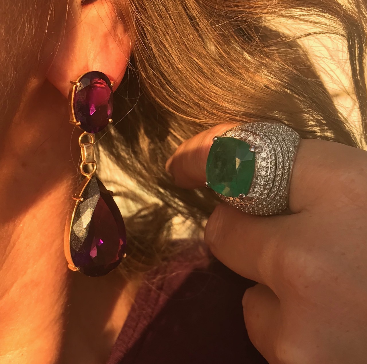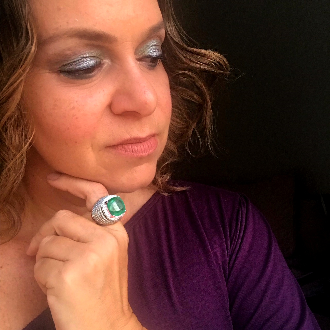 Fiz um sombreado de verdes, inclusive metálicos. Aproveitei e entrei com o verde no anel de esmeralda.