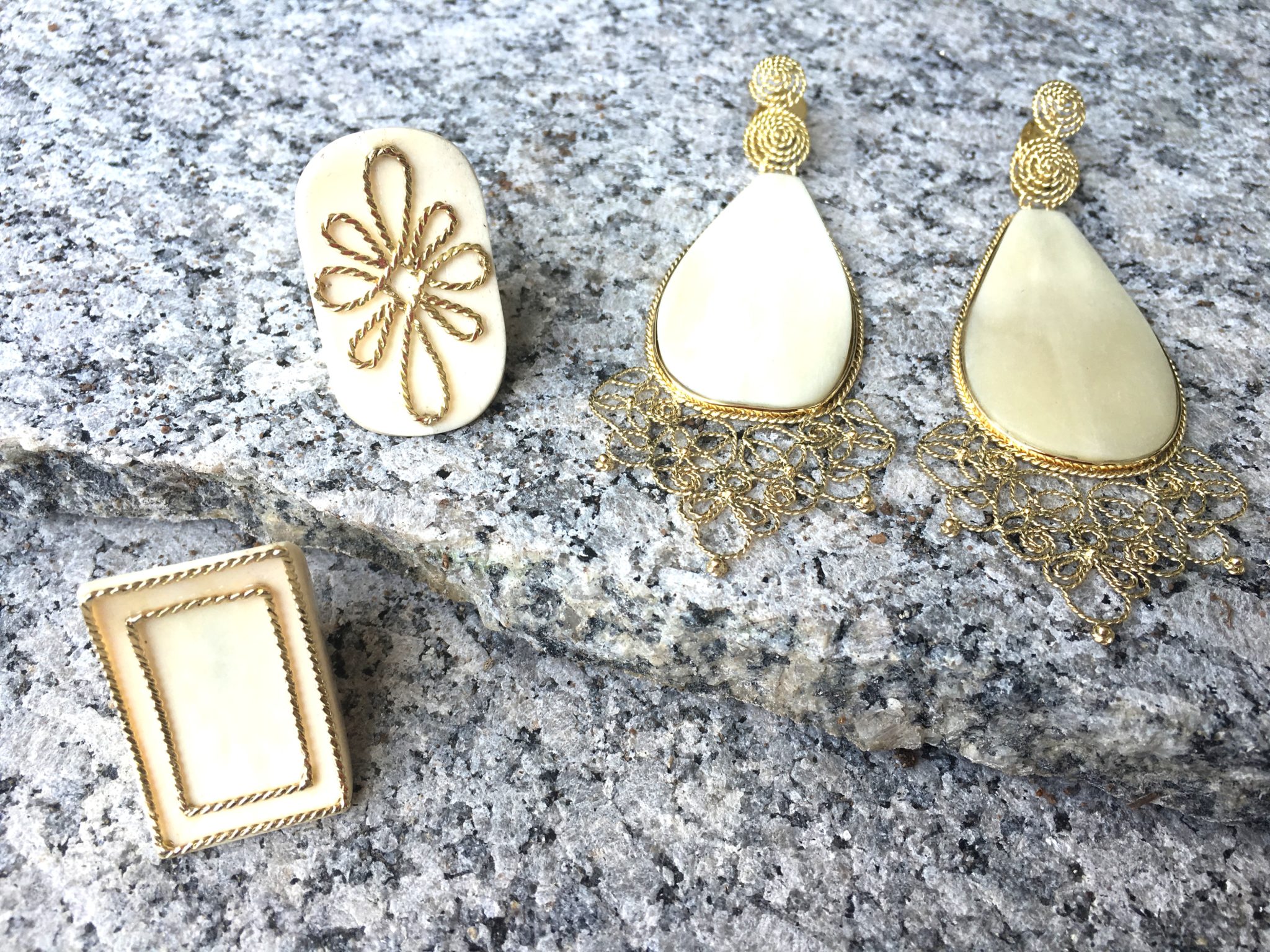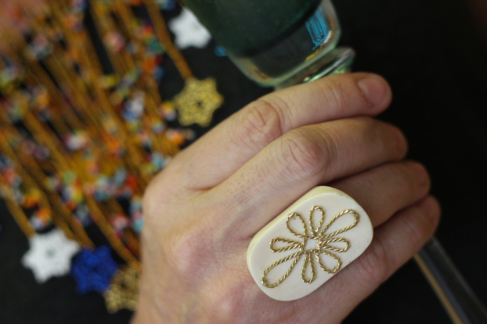 Dessa forma, eu quis misturar a leveza desse trabalho em ouro com a rusticidade das peças em osso que trouxe da Bahia feitas pelos índios pataxó, produzindo peças contemporâneas cheias de personalidade.
