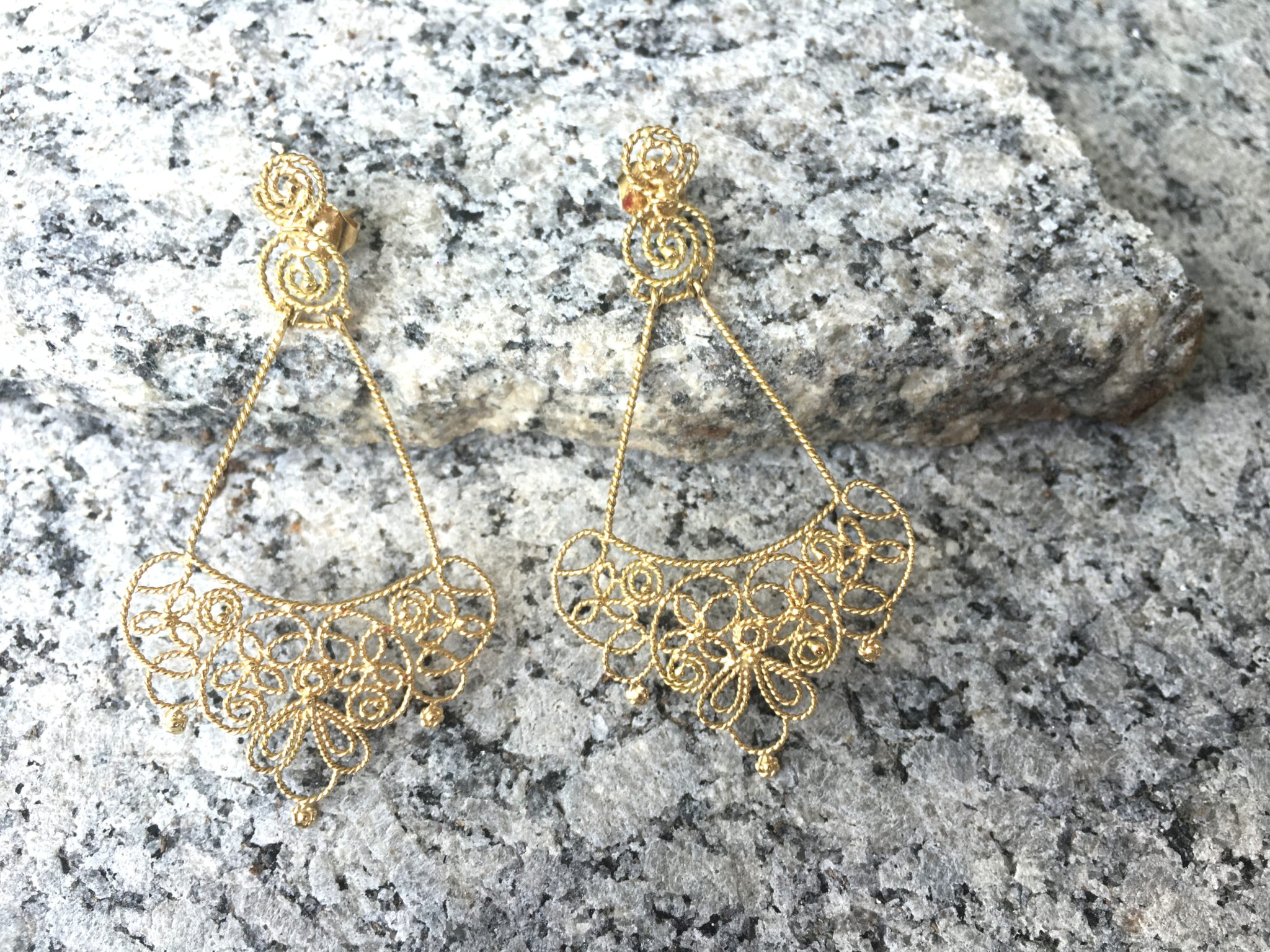 Portanto , a Filigrana é um trabalho ornamental feito de fios muito finos e pequeninas bolas de ouro ou prata soldadas de forma a compor um desenho. Essa técnica foi utilizada na joalheria desde a Antiguidade greco-romana, assim como ainda é empregada com grande visibilidade na região norte de Portugal. APERTE O PLAY.