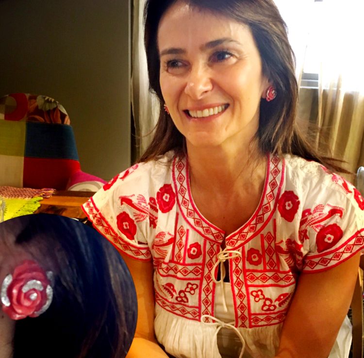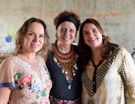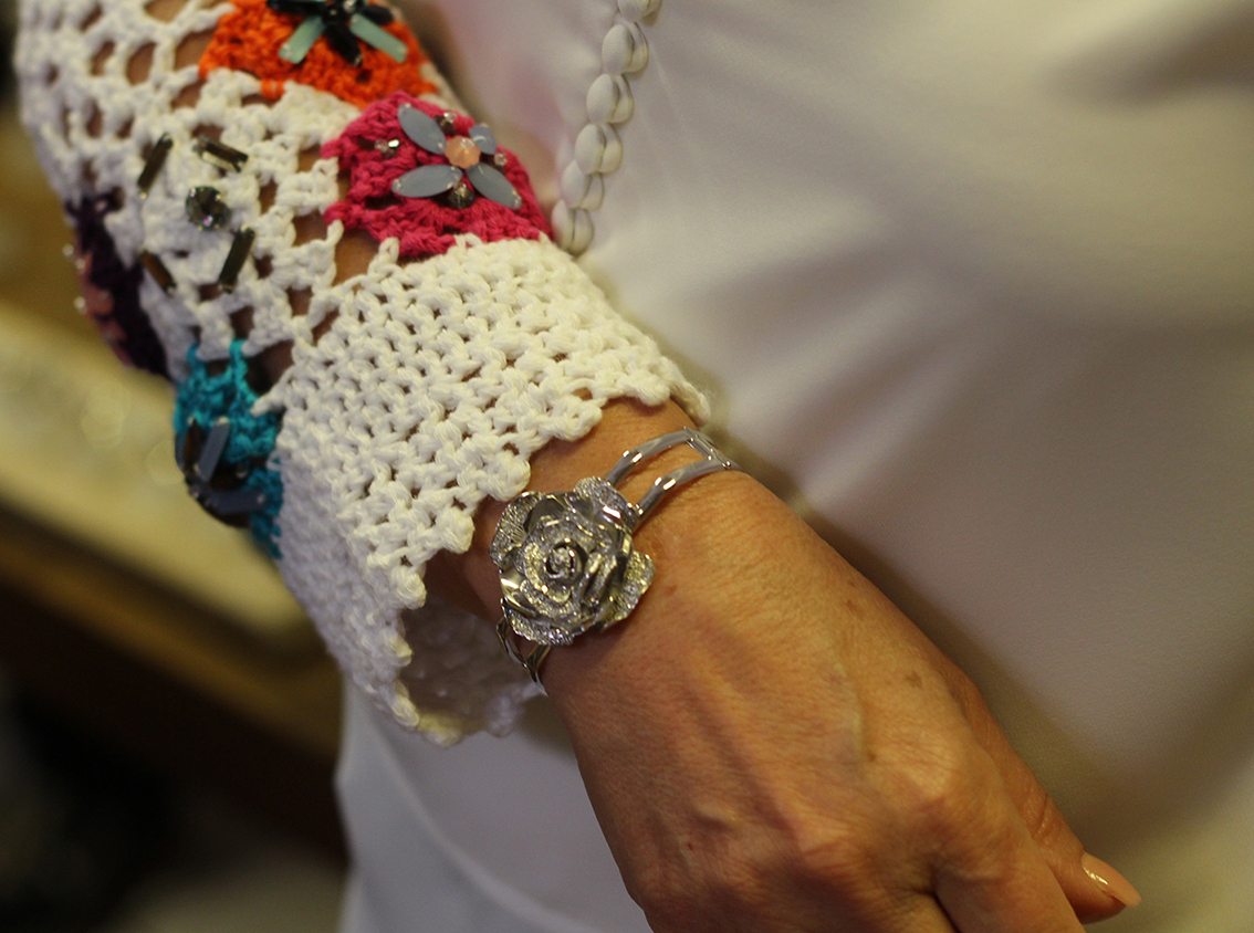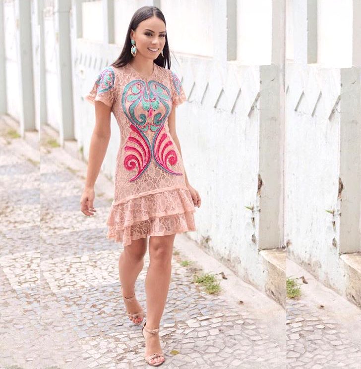 Certamente eu queria uma roupa que conversasse com toda a temática do evento. Teria então que ser uma moda enfeitada, colorida e feminina. A equipe UH PREMIUM me sugeriu esse vestido que combinaria com a jóia-chave da coleção, em filigrana, assim como a renda da roupa.