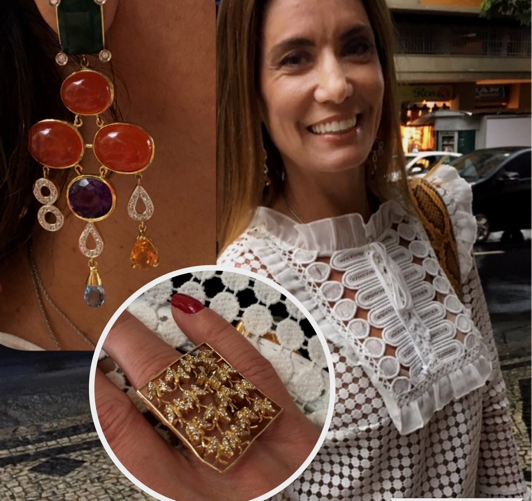 Renata Bello estava belíssima com seu Anel Buttefly JÓIAS PD em turquesas e rubis