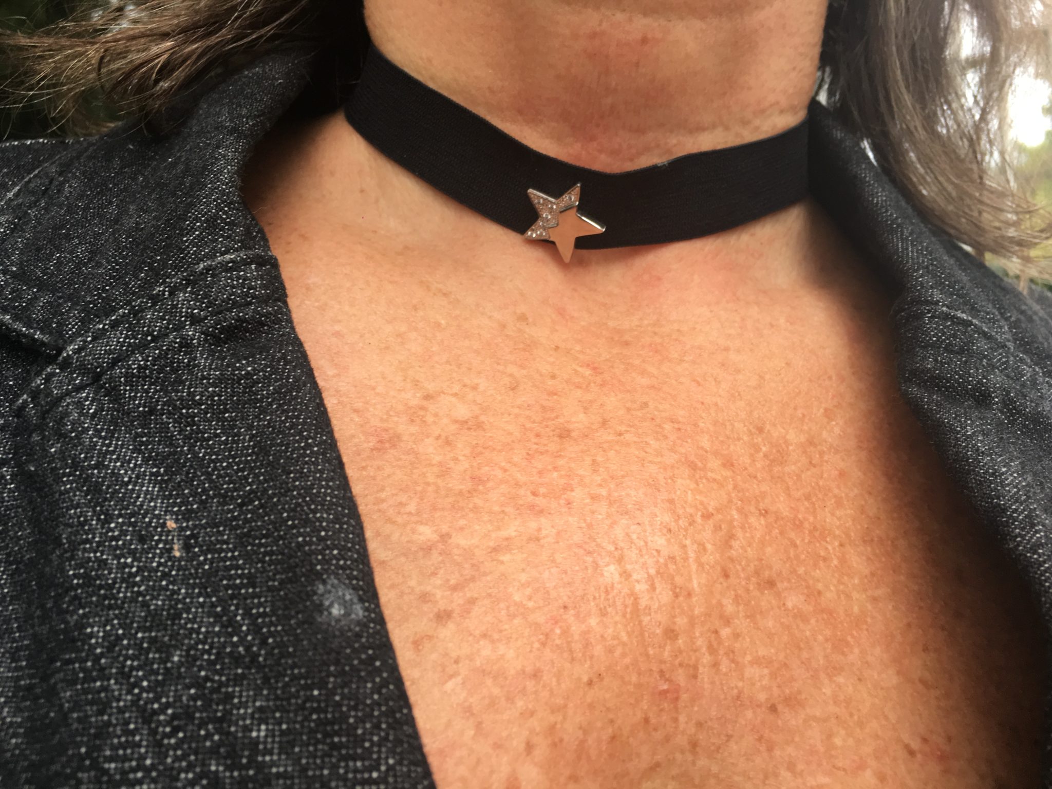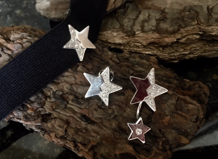 Usei um brinco de cada e coloquei a outra estrela na choker preta.