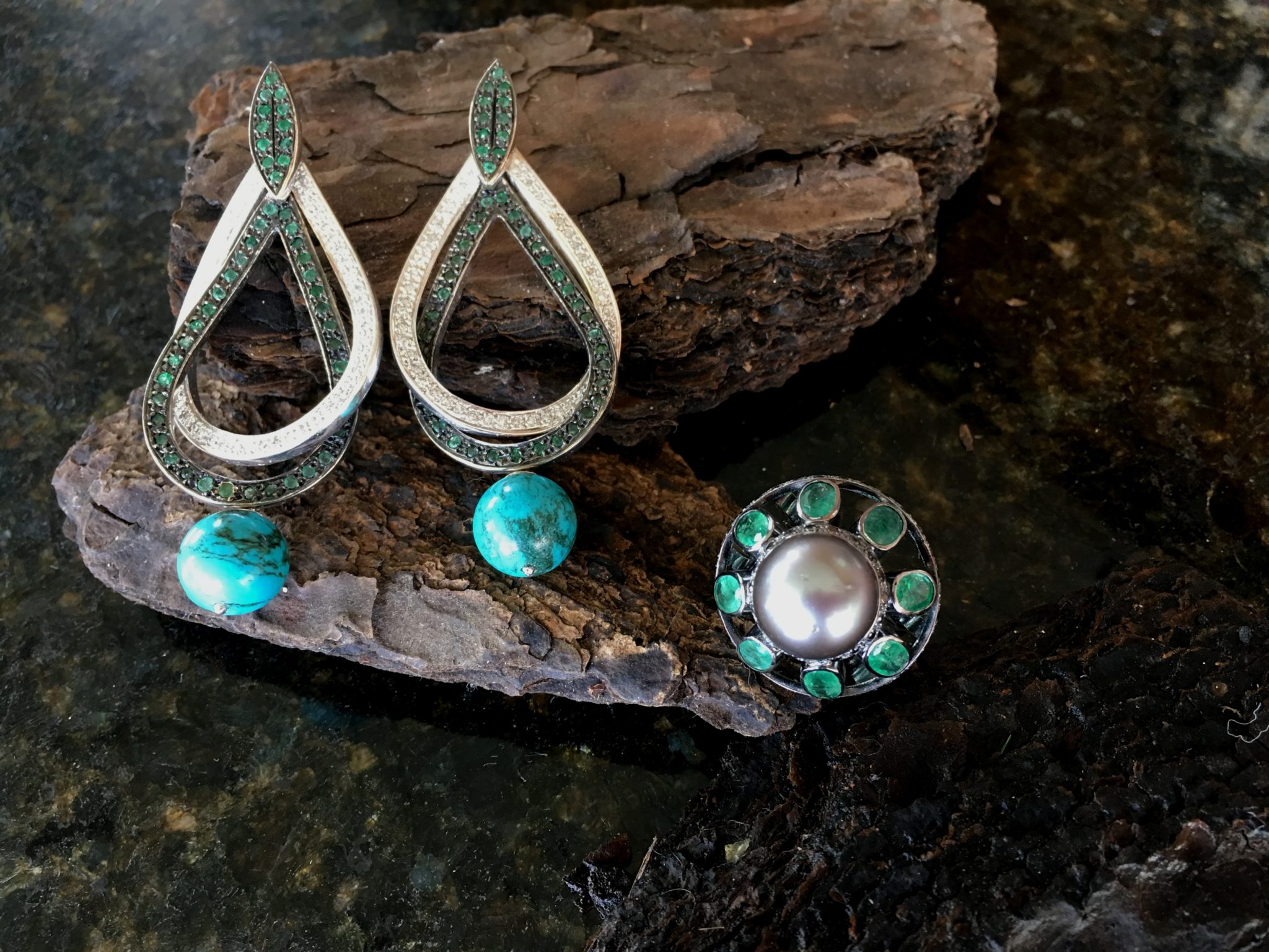 Brinco em esmeralda e brilhantes — 10 x 1000,00 = 10.000,00 / acessórios 10 x 180,00 = 1800,00 ( os dois )