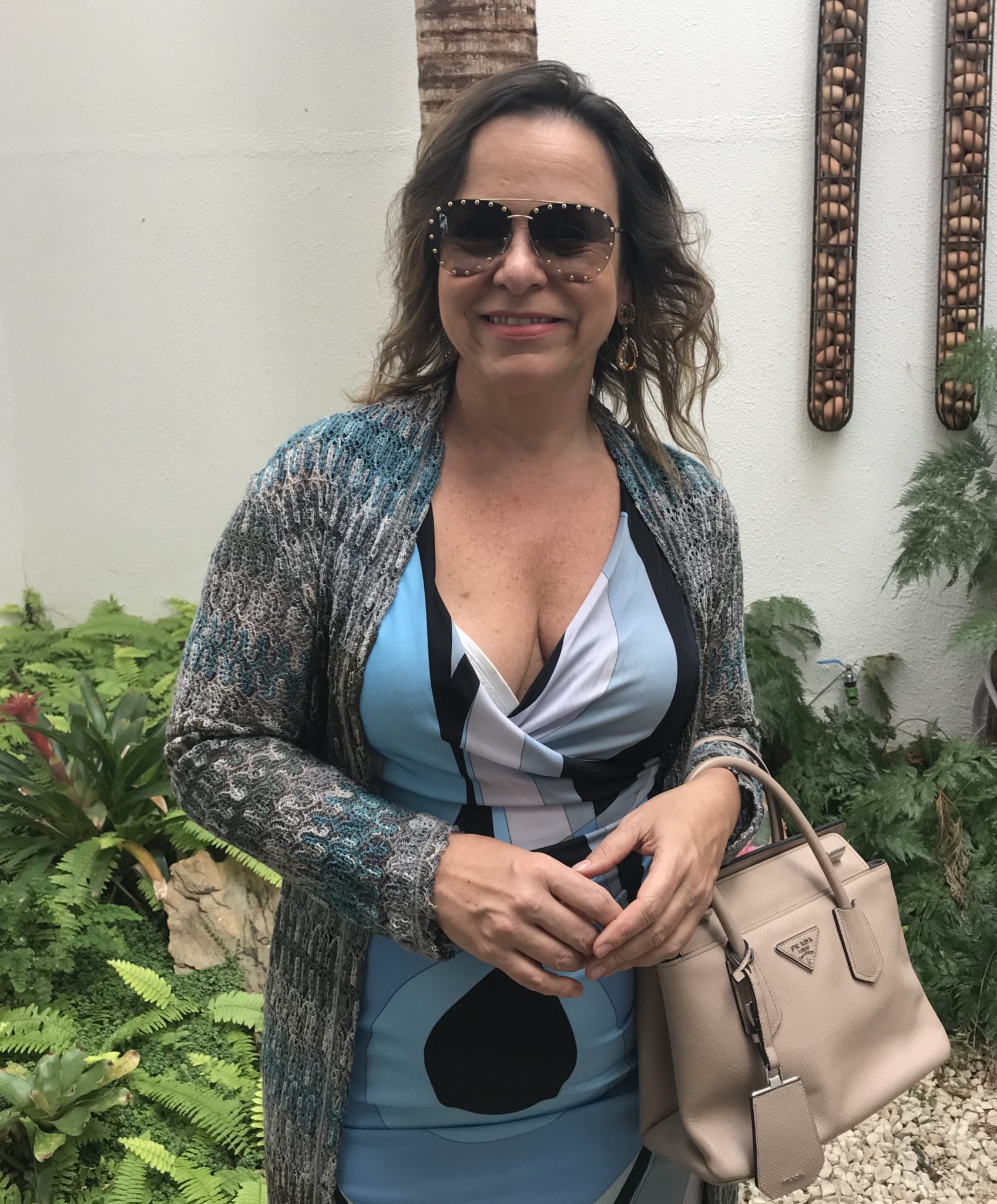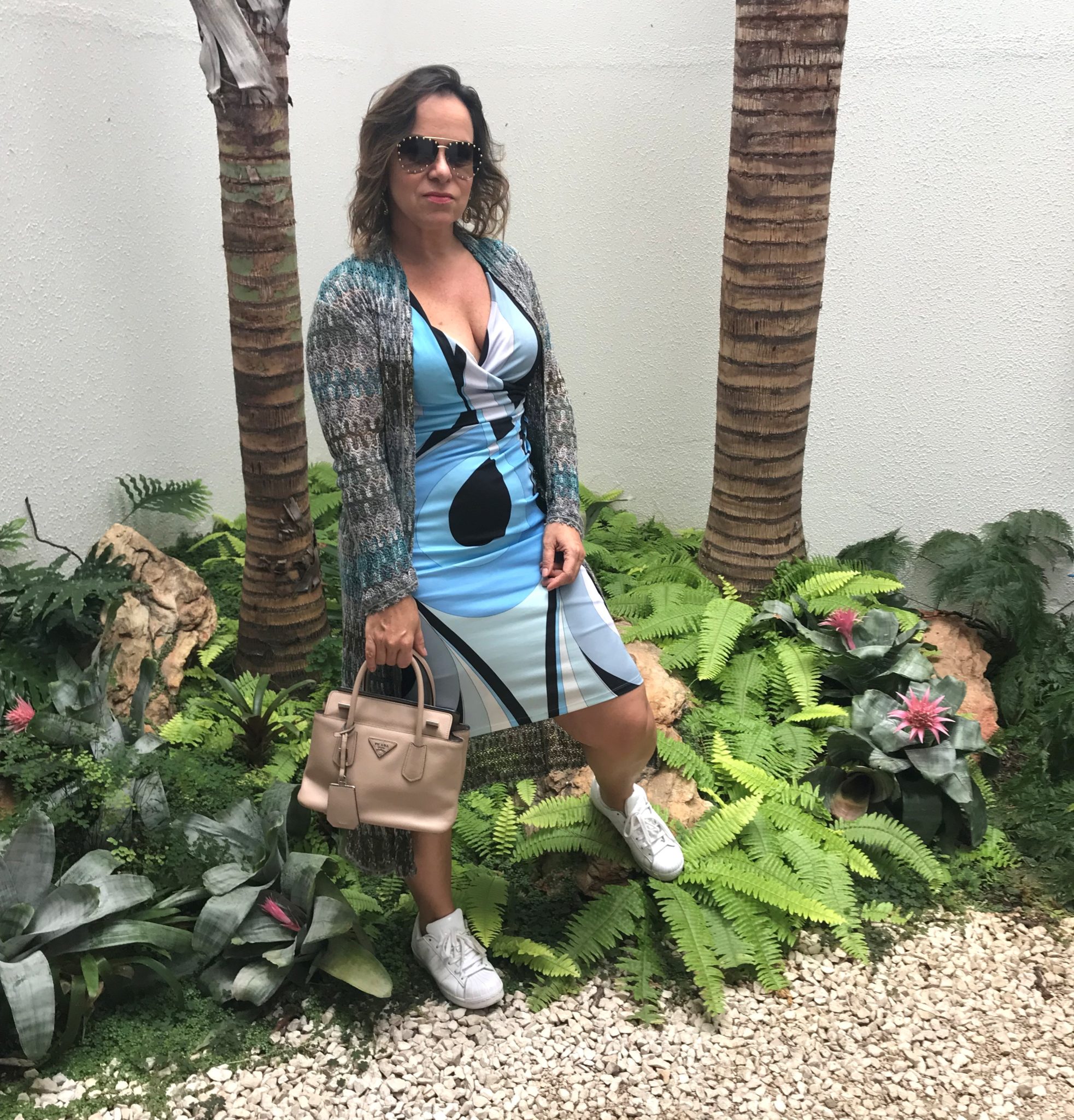 Esse foi o look do almoço de sábado no aniversário do meu afilhado Guilherme. Como estava marcado para o meio-dia e seria ao ar livre, ainda seria possível usar algo não tão quente. Misturei essas 2 estampas com fundo azul ( casaco Missoni e vestido Pucci ) e completei com acessórios neutros.