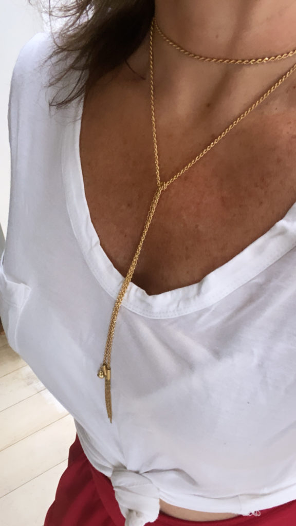 Os colares trouxeram essa cara mais romântica e feminina a esse look.