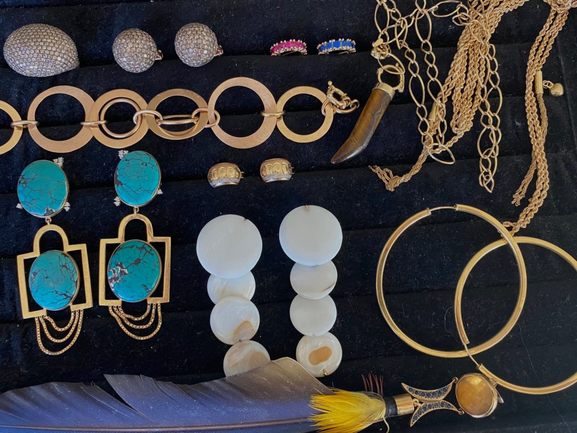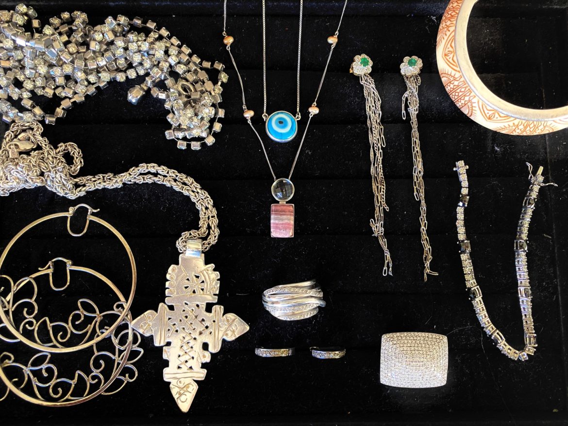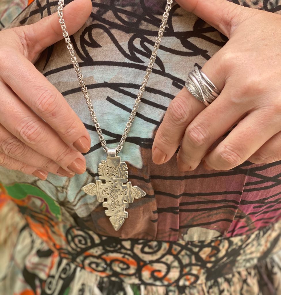 Essas foram as joias que levei para incrementar os looks. Em prata, uma cruz étnica da Turquia com a correntona e uma argola design exclusivo JOIAS PD. Além disso, um FIO LONGO DE CRISTAIS SWAROVSKI e uma pulseira étnica da Colômbia.