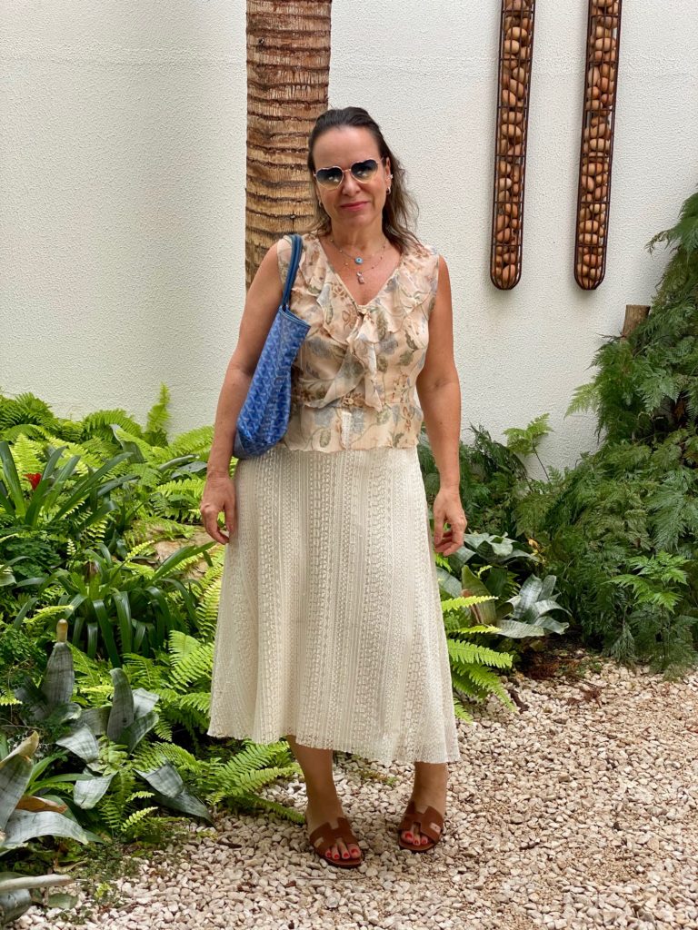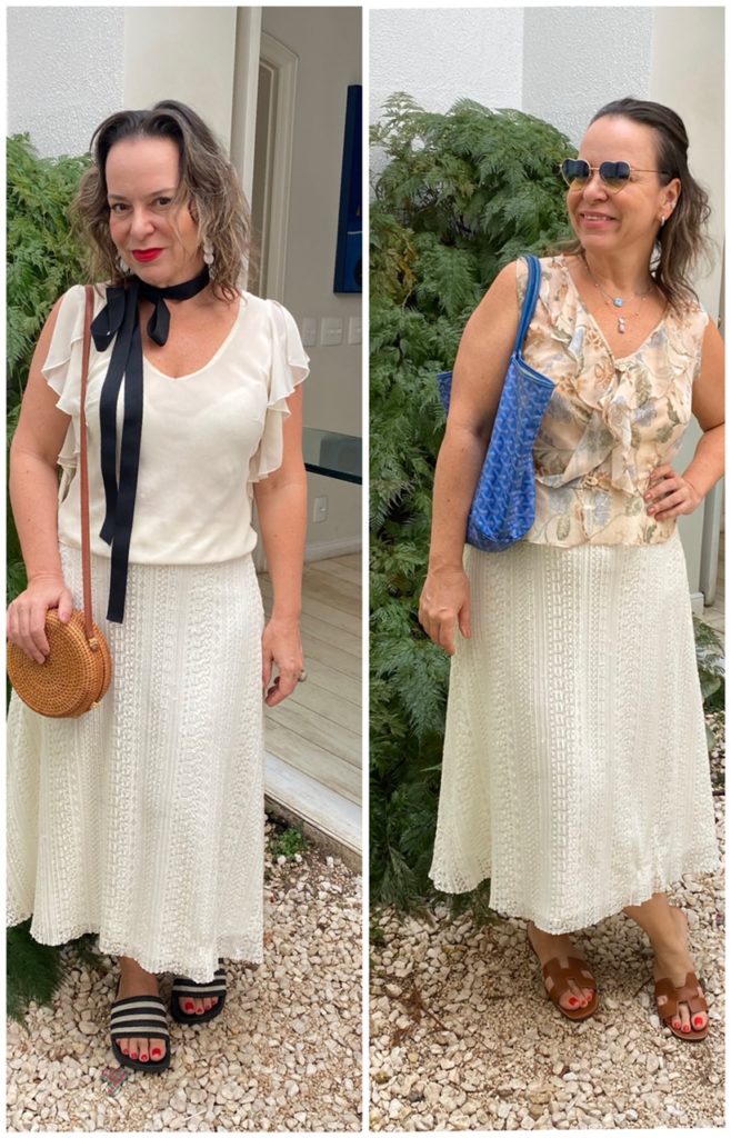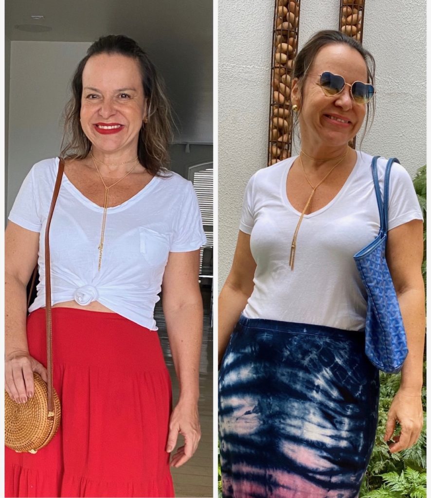 Eu comprei essa saia na TAHARI BH há uns 6 anos e uso sempre no verão de várias maneiras, inclusive fora do Brasil, como você pode ver AQUI .