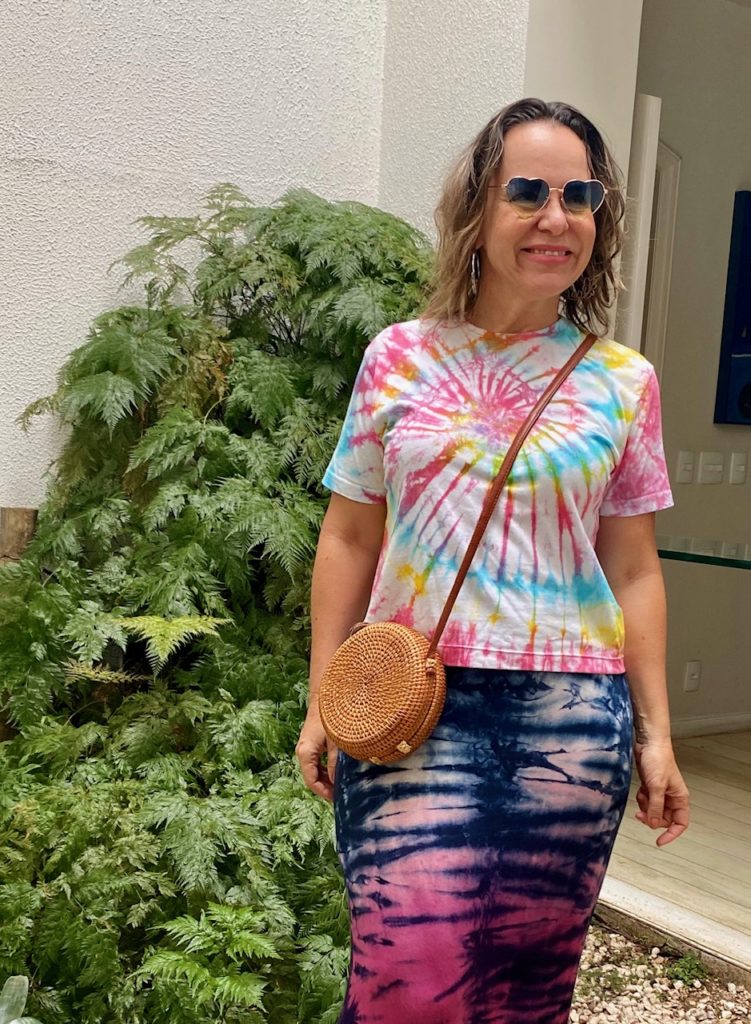 Esse já tem a ousadia do mix de estampas, mesmo ambas sendo tie dye.