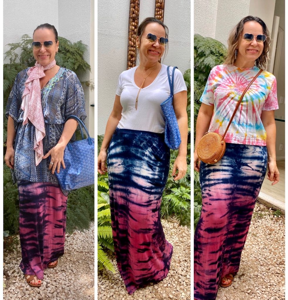 Vamos falar sobre as tendências, a antiga história desse tipo de tingimento e como podemos trazer esse conceito para os dias de hoje. Eu havia separado uma saia ( que usei 3 vezes ) e uma blusa da Chroma para a mala Trancoso.