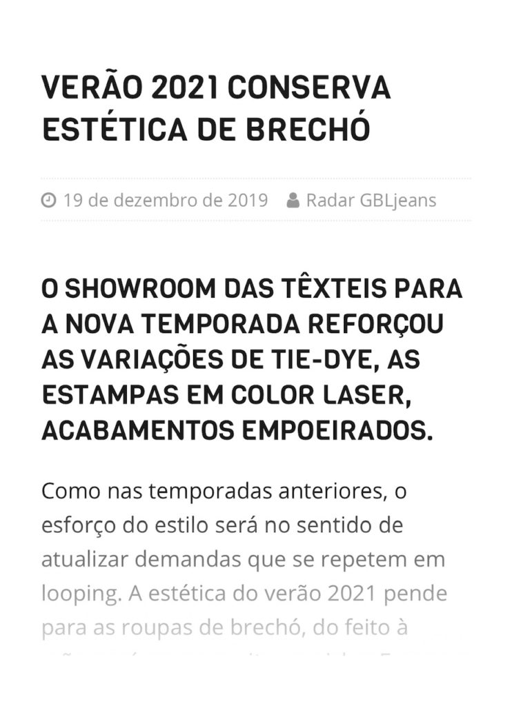 Os brechós e eventos de trocas de roupa já são as áreas que mais crescem no mercado de moda, depois do fenômeno iniciado há 10 anos pelas fast-fashion. Mesmo quem não gosta e não frequenta, a estética de roupa com cara de usada vem para ficar. É ecologicamente correto ser sustentável ao reaproveitar. Dessa forma, a moda precisa então ter essa “cara”.