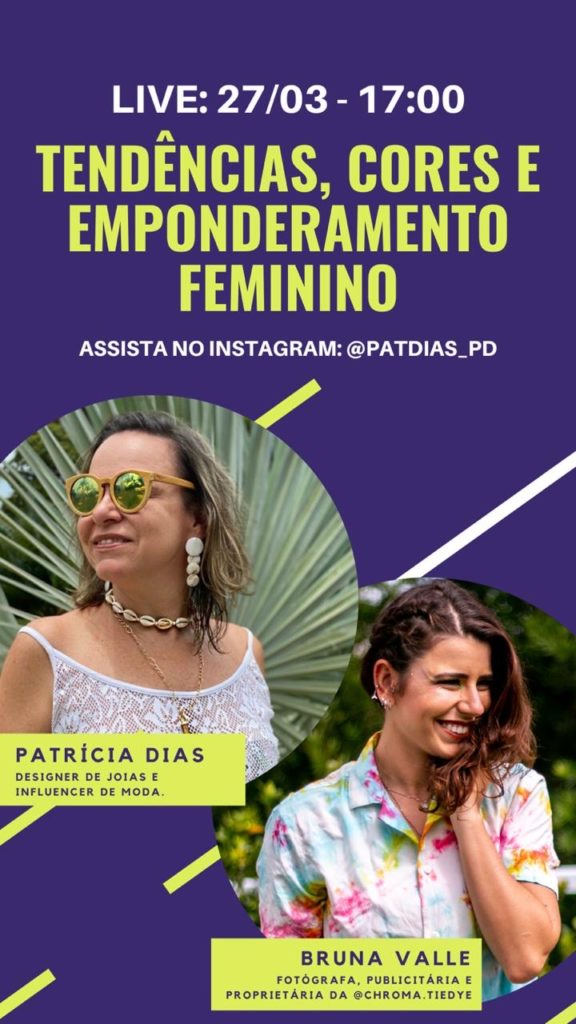Perguntei a vocês seguidoras do insta @PATDIAS_PD se gostam e usam e a maioria disse SIM. Isso me motivou a organizar um LIVE para amanhã – 27/3 – às 17 horas, com BRUNA VALLE, a designer por trás da CHROMA.TIEDYE