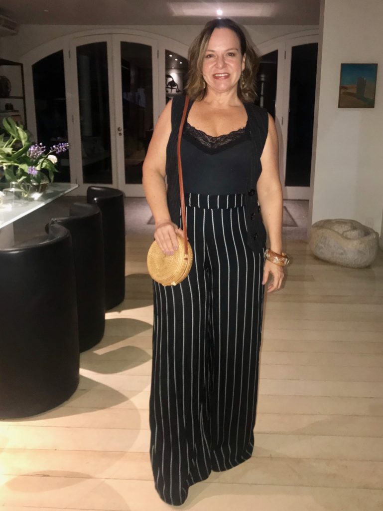Tanto a pantalona, quanto o colete em risa de giz são peças atemporais que acompanharão você pela vida afora.