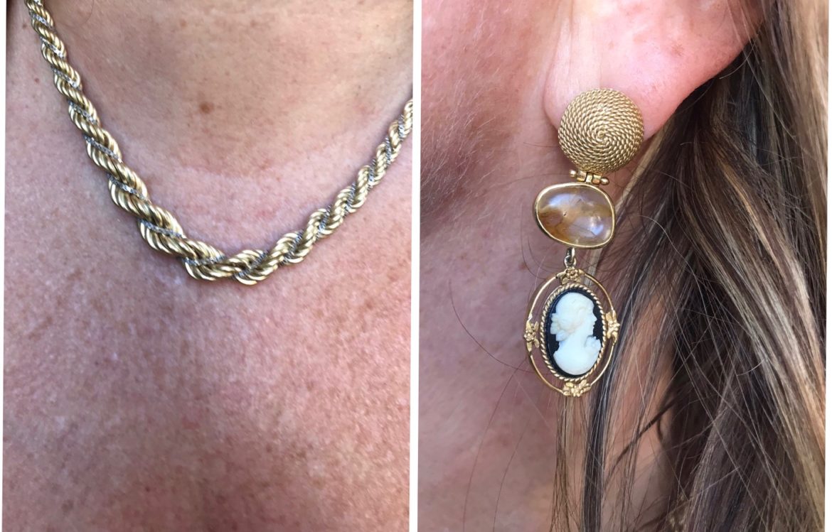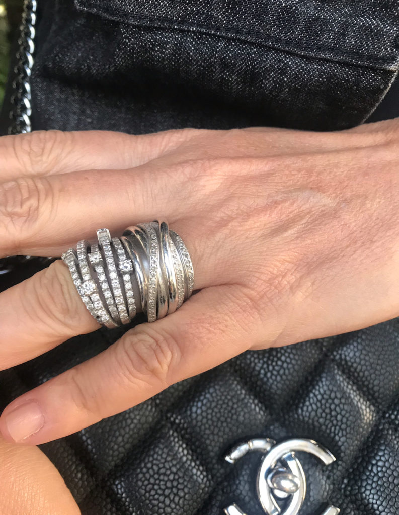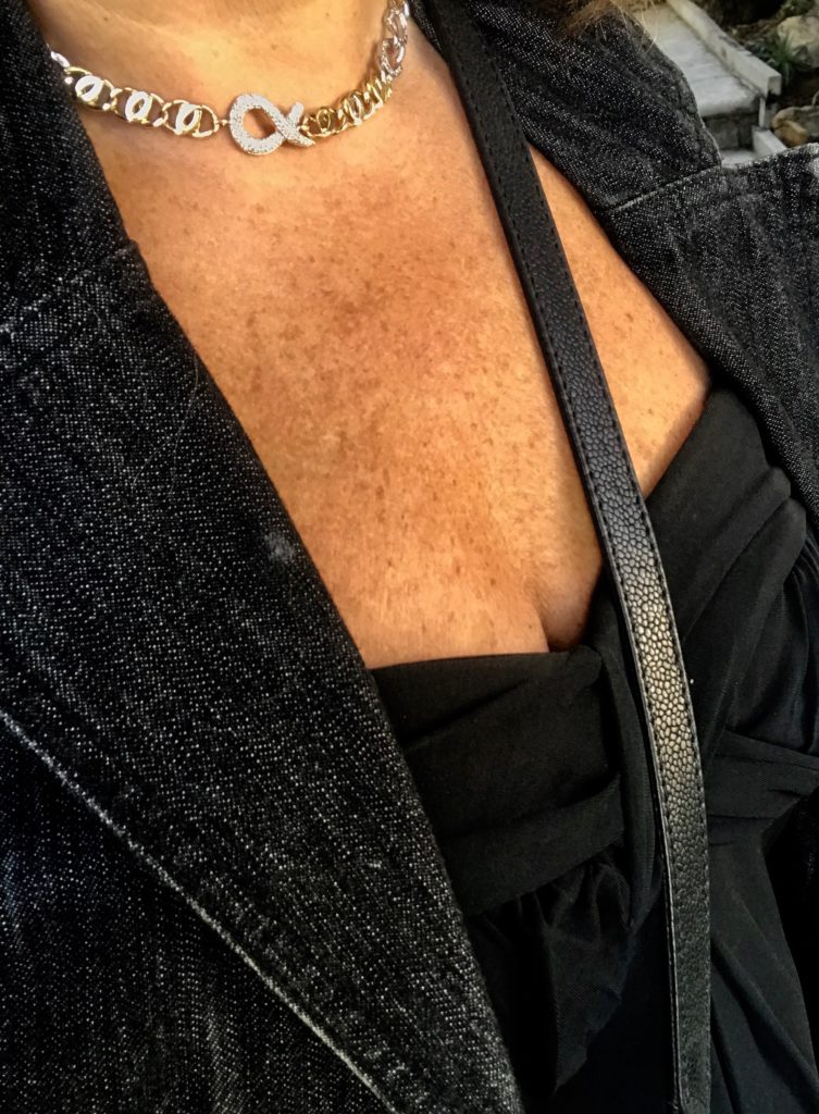 O decote do macacão preto com a moldura do trench foram a situação perfeita para usar essa linda choker em ouro e brilhantes. Usei ainda anéis em ouro e brilhantes, combinando com as ferragens da bolsa. Devo ainda confessar que eu realmente tenho zero preconceito quanto ao uso de tons de ouro diferentes. Acho até “cool”, sabia?