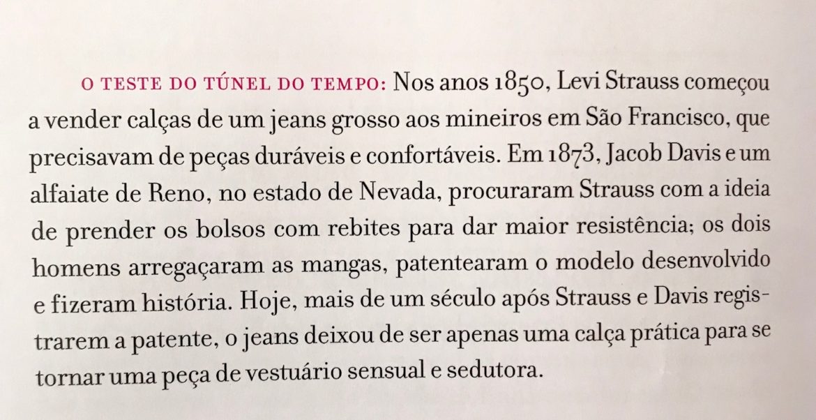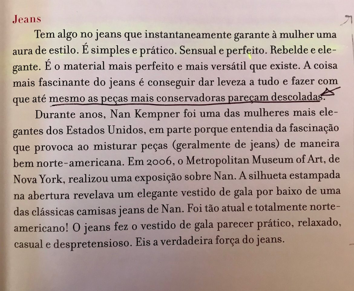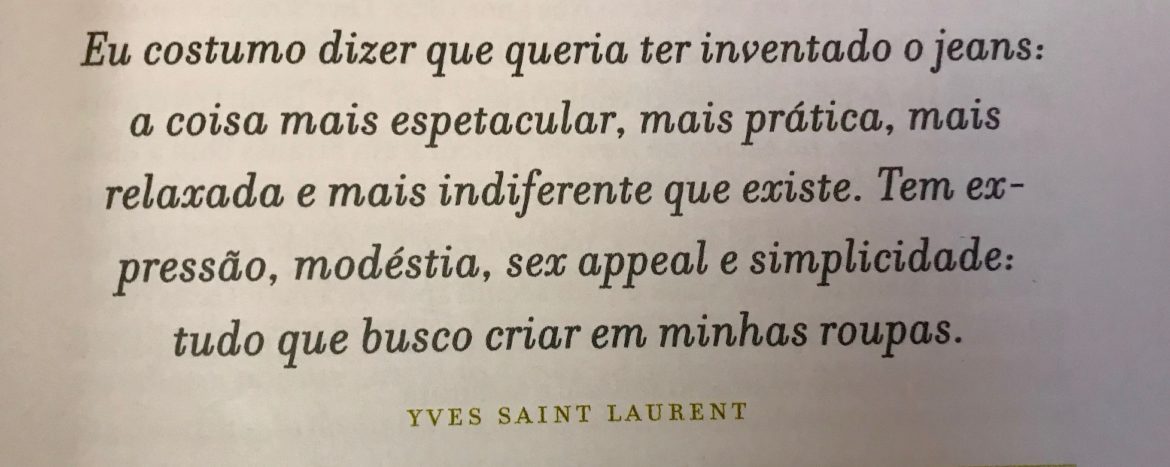 Os textos de hoje são todos do LIVRO NEGRO DO ESTILO e falam sobre a importância do jeans certamente como uma das 10 peças que a mulher elegante deve ter e usar. Até mesmo St Laurent, um dos maiores estilistas do século passado, gostaria de tê-lo inventado. Mas, na verdade, foi LEVI STRAUSS que introduziu a novidade para o mundo no final do século XIX.