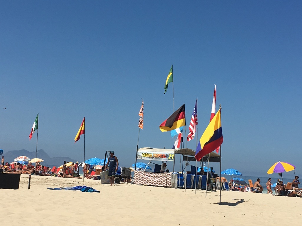 A praia logo em frente do hotel está com uma cara internacional que eu gostei. As bandeiras fazem homenagem aos hóspedes do mundo todo e a areia continua democrática como sempre foi. Quem está nos hotéis da orla tem o serviço de cadeiras, água, guarda-sol e isso é um conforto absurdo.