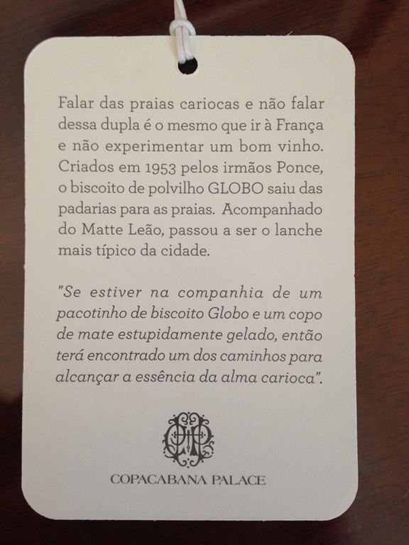 Imediatamente após a chegada, já encontramos no quarto esses mimos, que são a cara do Rio de Janeiro.